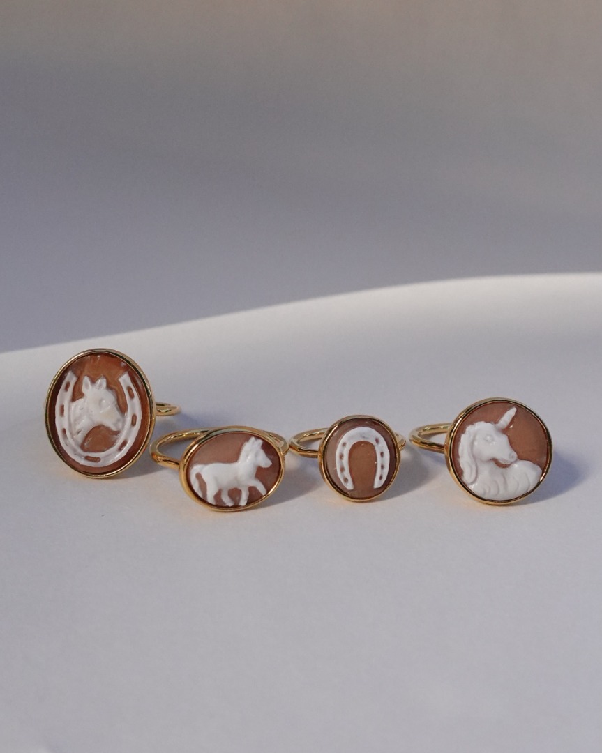 [ancient] cameo carving horse ring / cameo carving horse & horseshoe ring / cameo carving unicorn ring / cameo carving horseshoe pinky ring 35,200yen (with tax)