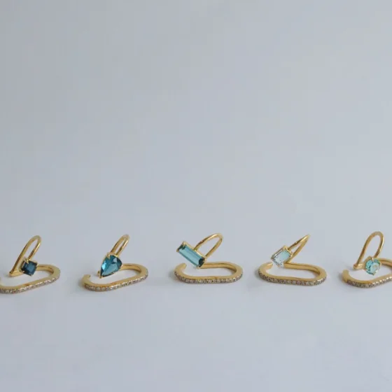 どこまでも続く海を彷彿とさせるような、美しいシーブルーの珍しいトルマリンをあしらったイヤーカフ。