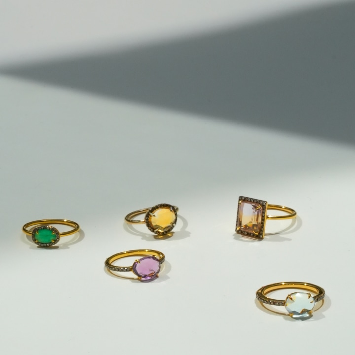 K10 multi tourmaline ring 66,000yen (with tax) / K10 yellow aquamarine ring 99,000yen