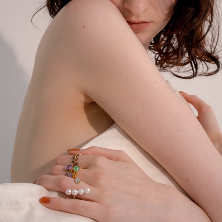 透明感溢れる大ぶりの天然石を贅沢にあしらった「一点もの」の