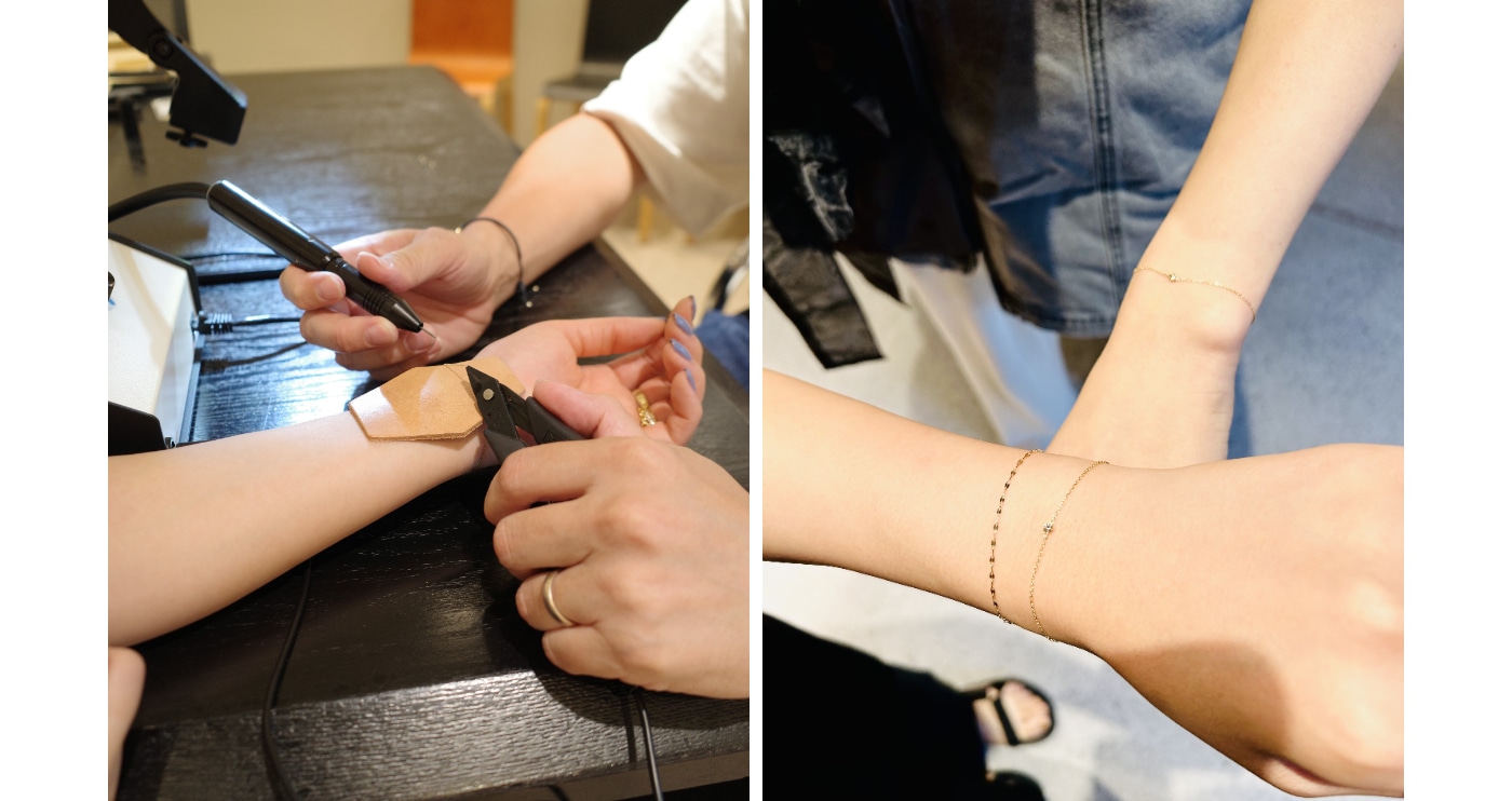手首のサイズに合わせて、その場で職人がチェーンカット&溶接する