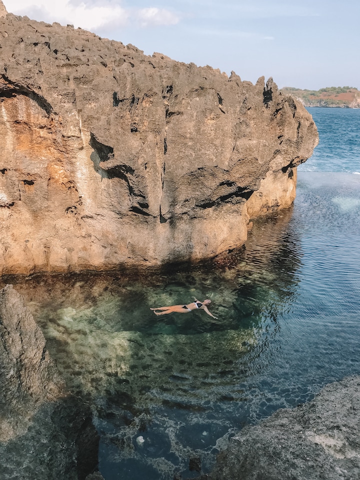 バリだったら、エンジェルズビラボン。ヌサペニダっていう島にあるんですけど、とってもキレイです。崖の中に小さな自然でできたプールみたいなとこがあって、崖を下りていくとそこで泳げるんです。本当に気持ちいいんです。