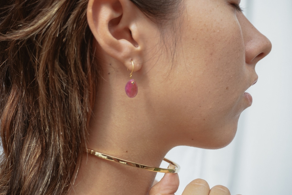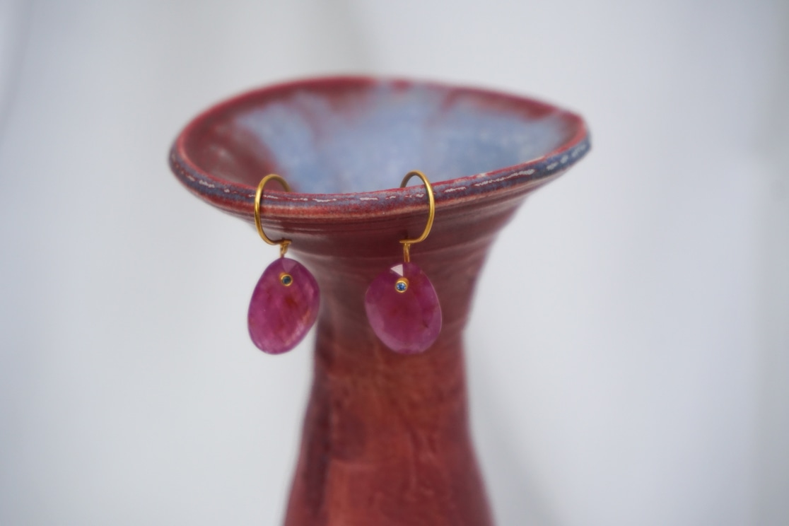 そしてルビーのピアスも、もともとマゼンタ色が好きなのでとってもかわいいと思いました。さりげなくサファイアが左右に一石ずつ入っていて、エキゾチックな雰囲気が、いま私がいるバリにもぴったりです。