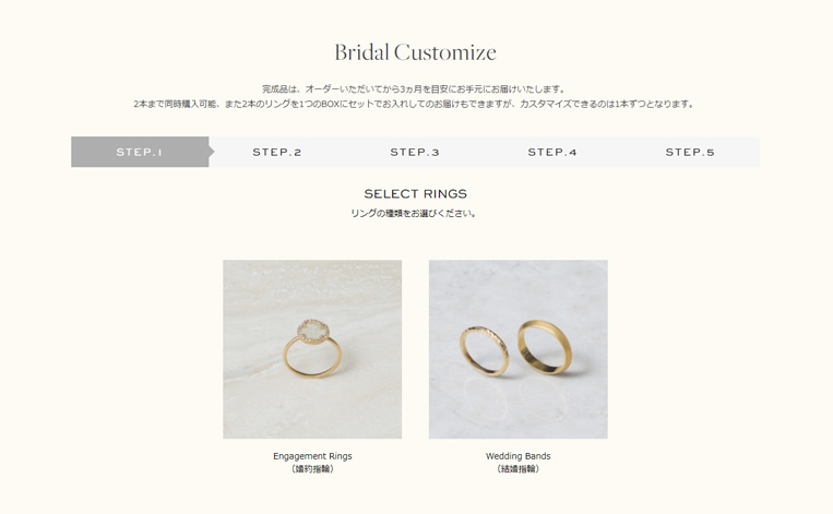 オンラインでも安心してブライダルリングをオーダーしていただけるように、WEBならではのデジタルな体験“Bridal Customize”をご用意しています。
