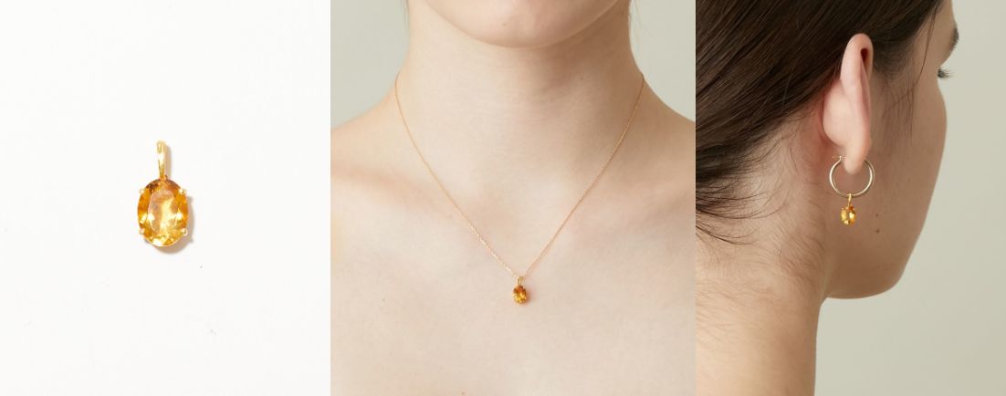太陽のエネルギーを含む、柑橘の果実のようなシトリンを、シンプルにセッティングしました。濃い蜂蜜色に輝くシトリンは、夏の日差しにも負けない煌めきをみせてくれます。