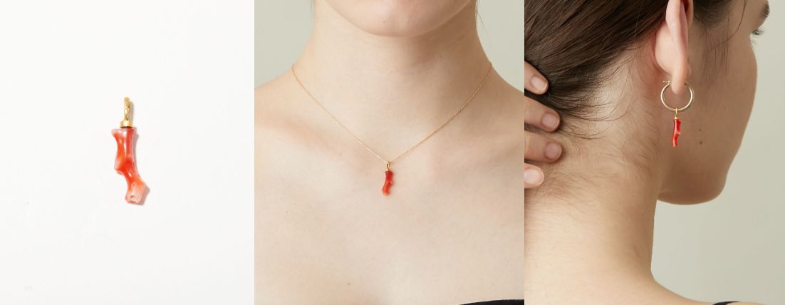 大自然の神秘を感じさせる、ユニークで有機的なシェイプのサンゴをチャームにしました。