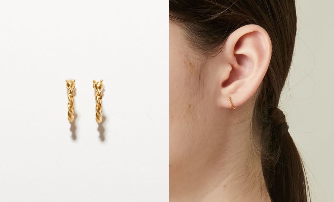 華奢な中にもディテールにこだわり、K10でお作りしたミニサイズのフープピアス。素肌になじむようなデザインで、スキンジュエリーのようにずっと着けていたくなります。