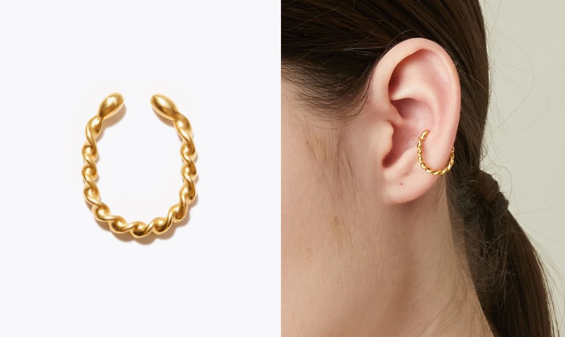 こちらも同じデザインでお作りした、イヤーカフ。耳にフィットしやすいオーバルデザインです。同じシリーズのピアスとレイヤードするのも素敵です。