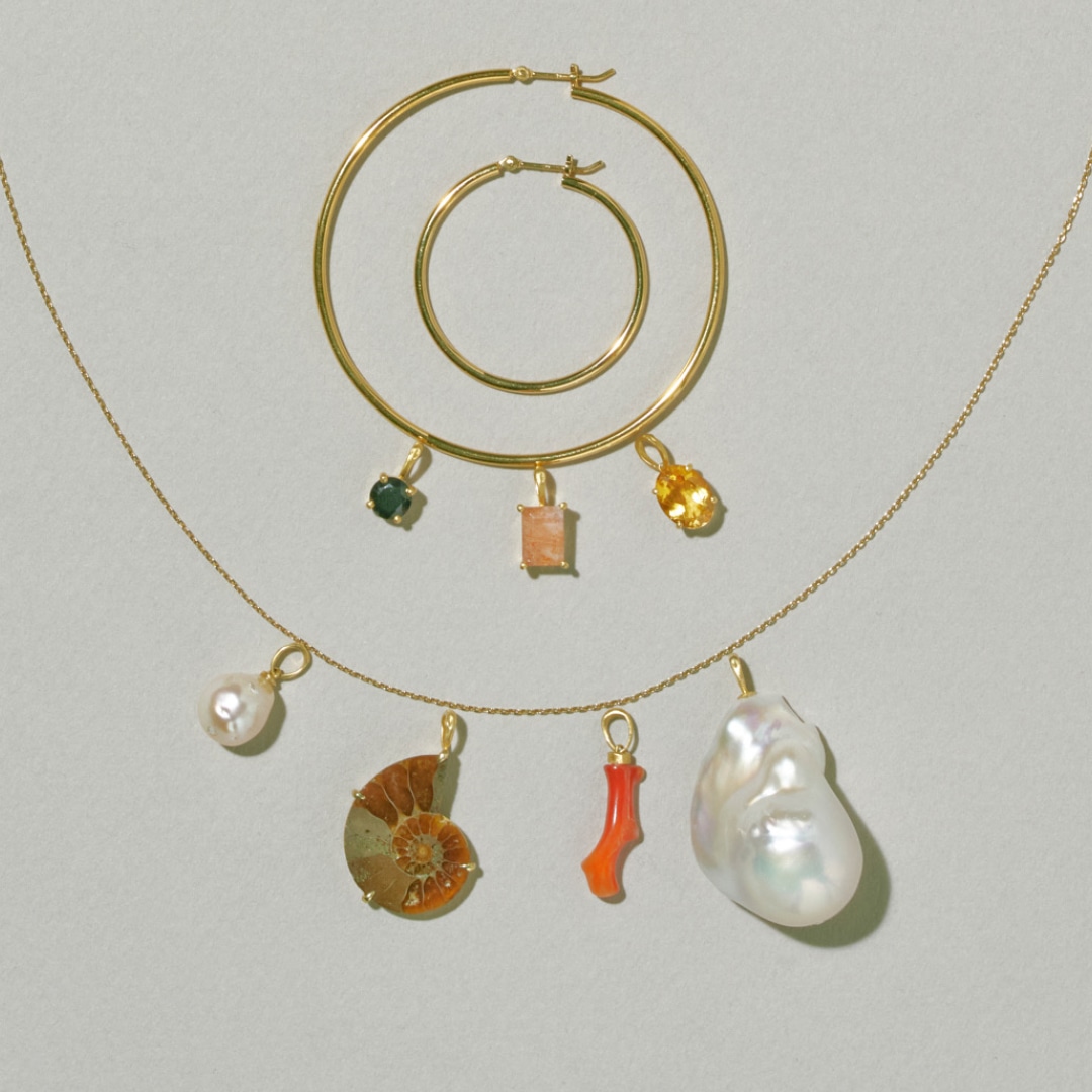 全て、ネックレスにもフープピアスにもつけてアレンジをお楽しみいただけます。こちらは、チャームと組み合わせて2点以上をセットでご購入いただくことで10%OFFとなる「Charm Customize」の対象となります。ぜひお好きな組み合わせを楽しんでいただけましたら幸いです。