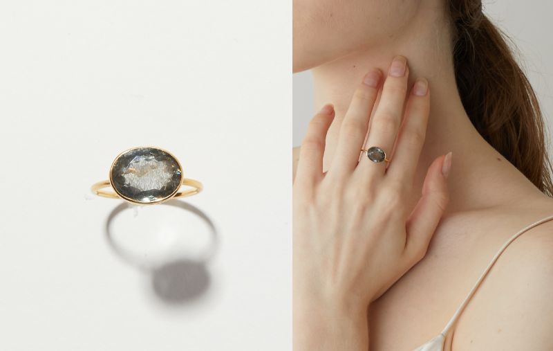さらに“eden”シリーズから、モスアクアマリンが幻想的な煌めきを放つ、一点もののリングも発売いたします。 こちらは8月上旬発売となります。