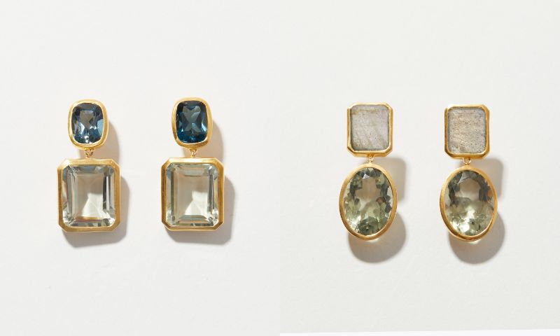 [eden] london blue topaz green quartz duo pierced earring 35,200yen (with tax)/[eden] labradorite green quartz duo pierced earring 33,000yen (with tax)