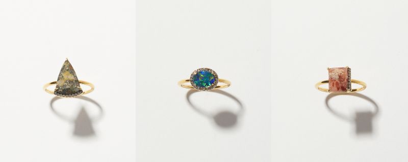 [elafonisi] markasite pave diamond ring 24,200yen (with tax)/[elafonisi] doublet opal pave diamond ring 29,700yen (with tax)/[elafonisi] jasper pave diamond ring 24,200yen (with tax)