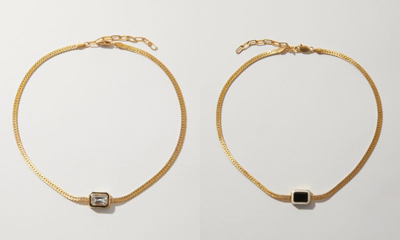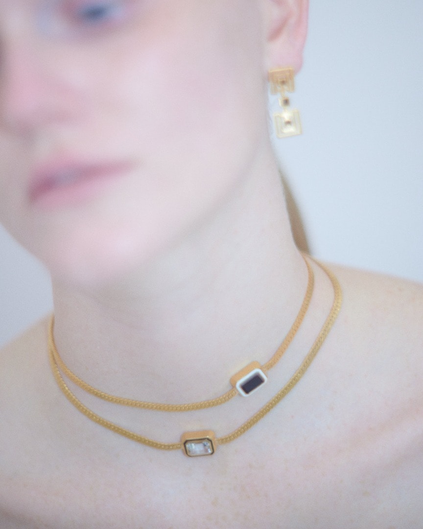 こちらはワイドチェーンのチョーカーに、大振りの天然石を中央に配しました。