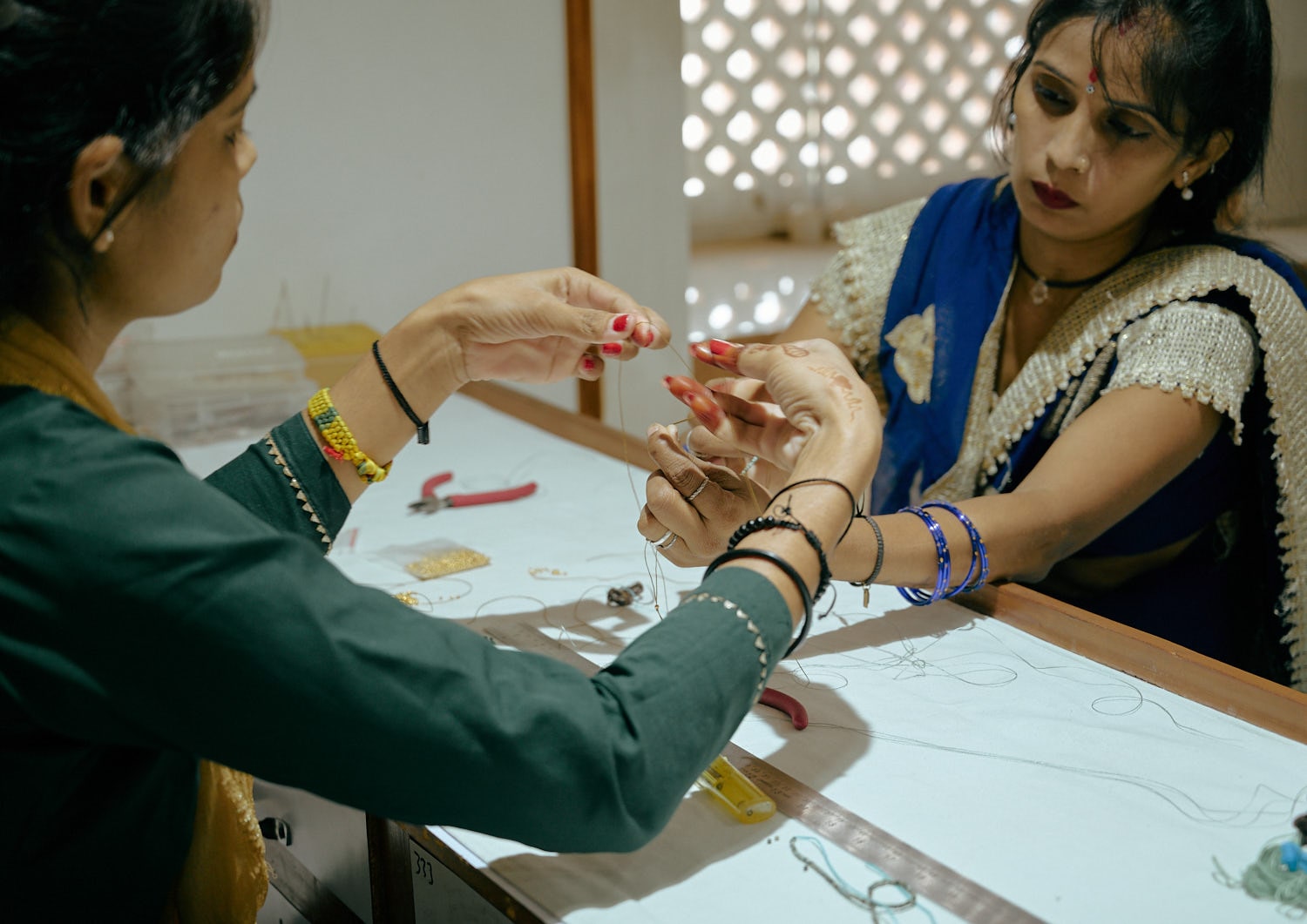 「近所の方から、女性を雇ってくれる工房があることを教えてもらいました。ここで働かせていただき、早くも4年が経ちます。ジュエリーを作る技術を身につけて、今では新しく入ってきた女性に教えていたりもします。」