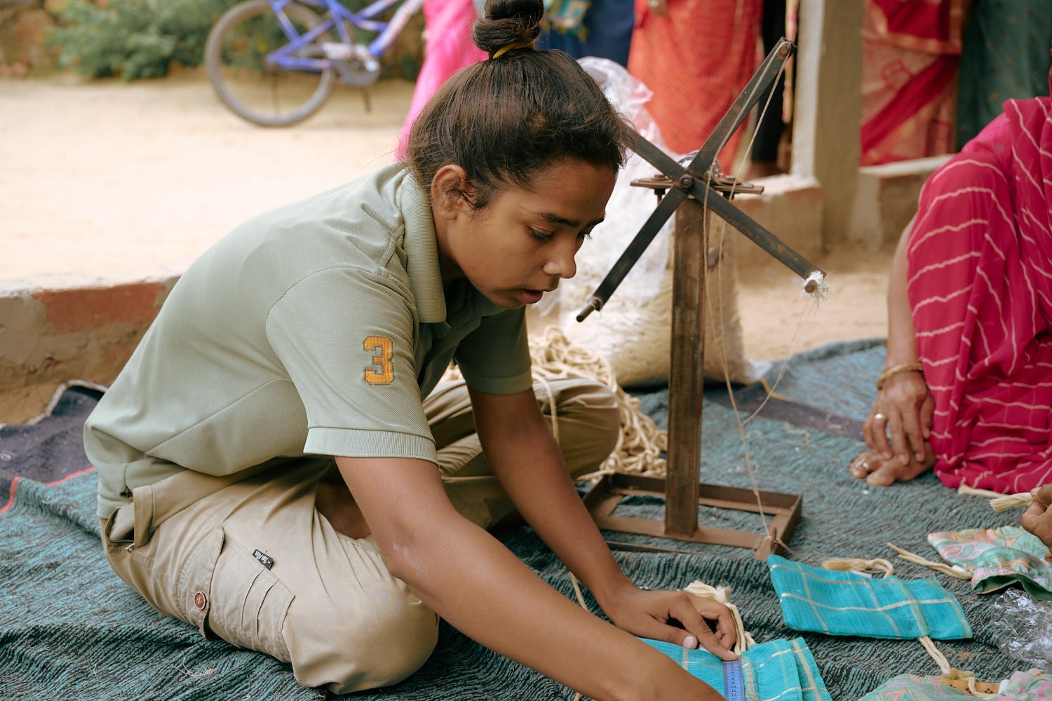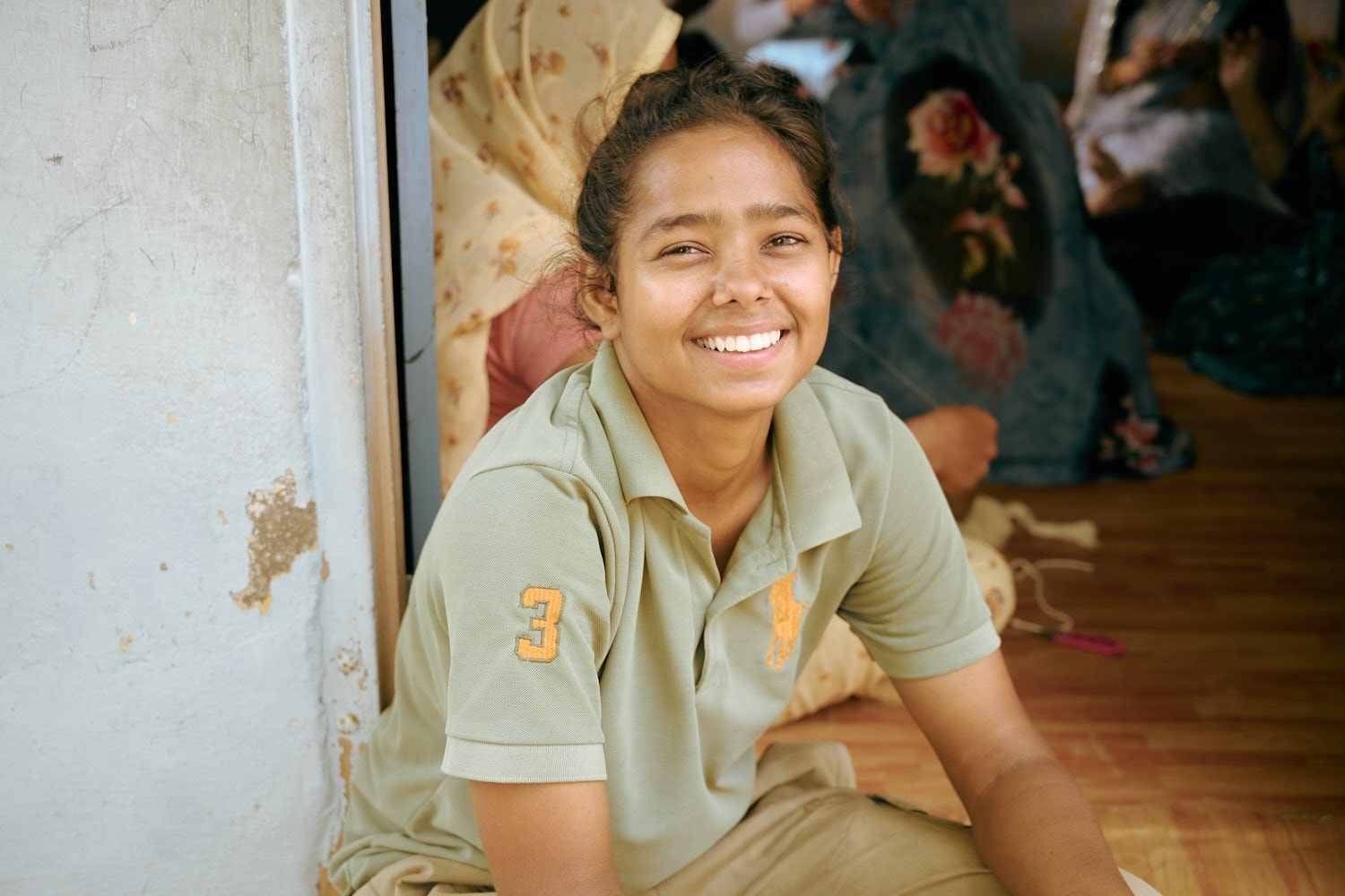 移動手段を持たない女性たちは、外へ働きに出ることさえ難しい。家事や育児、勉強も両立させながら、家で仕事ができるように。ジートは、NGOで女性たちに縫製や刺繍のスキルを身につけさせ、家で働く環境を整えた。