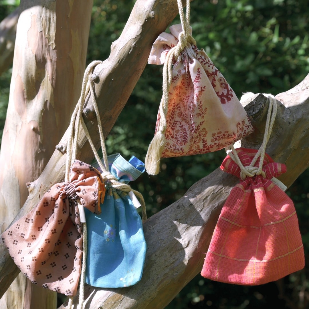 ジュエリーとともにお届けするポーチは、インドNGOで働く女性たちの手で一つひとつ丁寧に作られる。