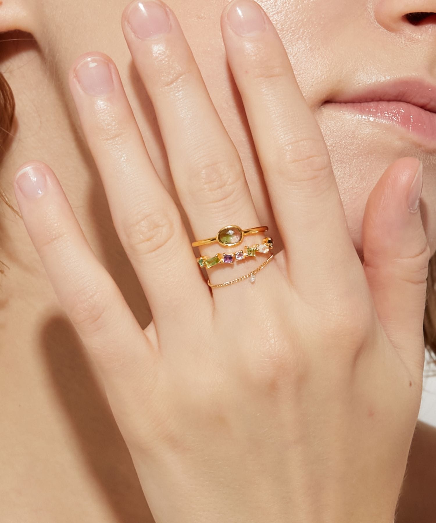 A special set of three limited-edition rings to add color to your holiday season. This ring features a simple bezel-wrapped, precious bicolor tourmaline discovered in Jaipur, India. This half eternity ring features a rhythmic array of multi-stones of different colors and shapes. This 18k gold chain ring features delicate diamonds. Wear them stacked on the same finger, strung together on different fingers, or individually. Enjoy the thrill of discovering your favorite combination. This multi-stone ring will feature one of the listed combinations. This item will be delivered in special packaging. Please note that gift wrapping is not available. We cherish the natural beauty of stones. We value the natural color, shape, size, and inclusions of natural stones, nurtured by the chance of time, as beautiful and unique features. Please note that this item cannot be resized. Thank you for your understanding.