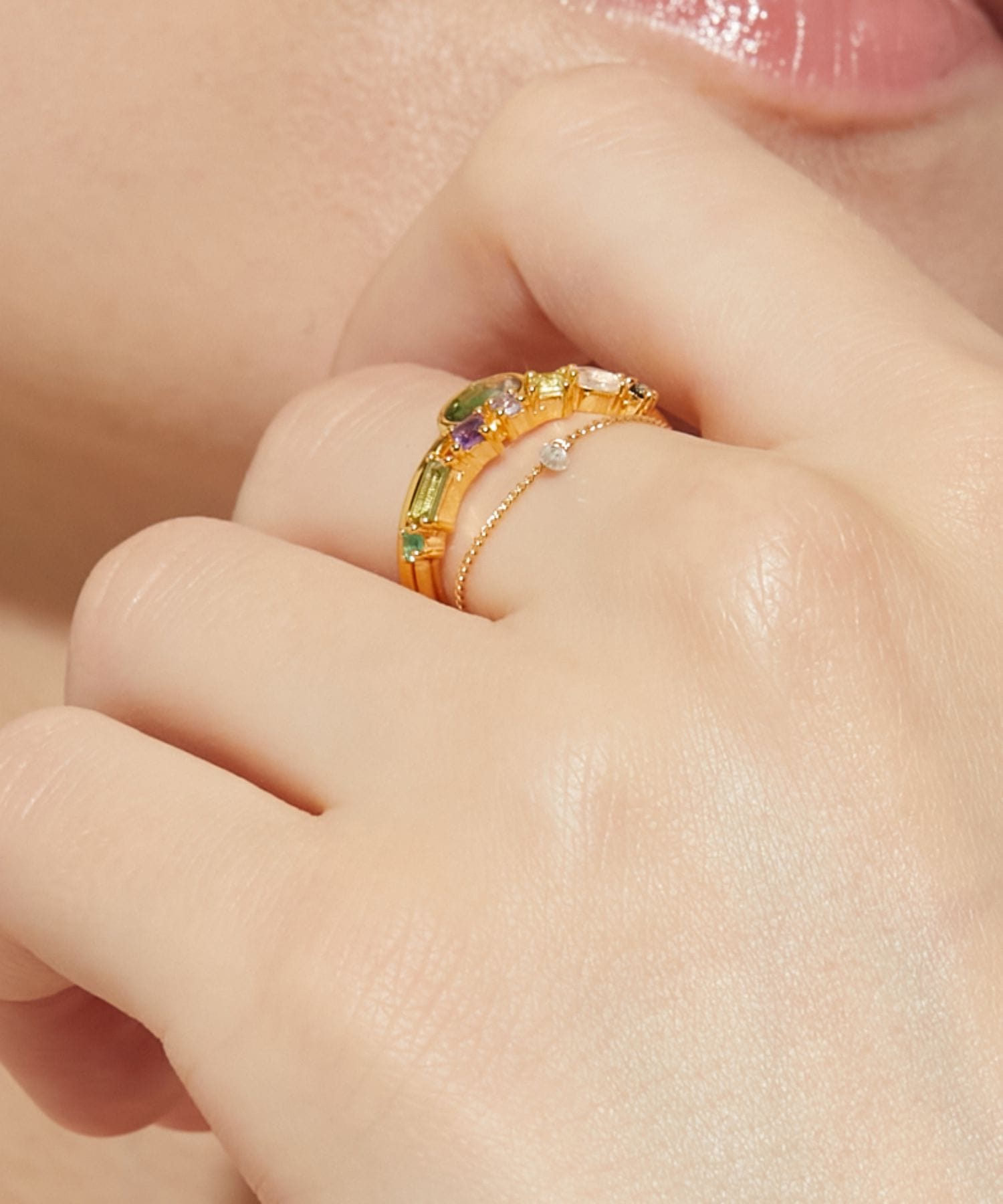 A special set of three limited-edition rings to add color to your holiday season. This ring features a simple bezel-wrapped, precious bicolor tourmaline discovered in Jaipur, India. This half eternity ring features a rhythmic array of multi-stones of different colors and shapes. This 18k gold chain ring features delicate diamonds. Wear them stacked on the same finger, strung together on different fingers, or individually. Enjoy the thrill of discovering your favorite combination. This multi-stone ring will feature one of the listed combinations. This item will be delivered in special packaging. Please note that gift wrapping is not available. We cherish the natural beauty of stones. We value the natural color, shape, size, and inclusions of natural stones, nurtured by the chance of time, as beautiful and unique features. Please note that this item cannot be resized. Thank you for your understanding.