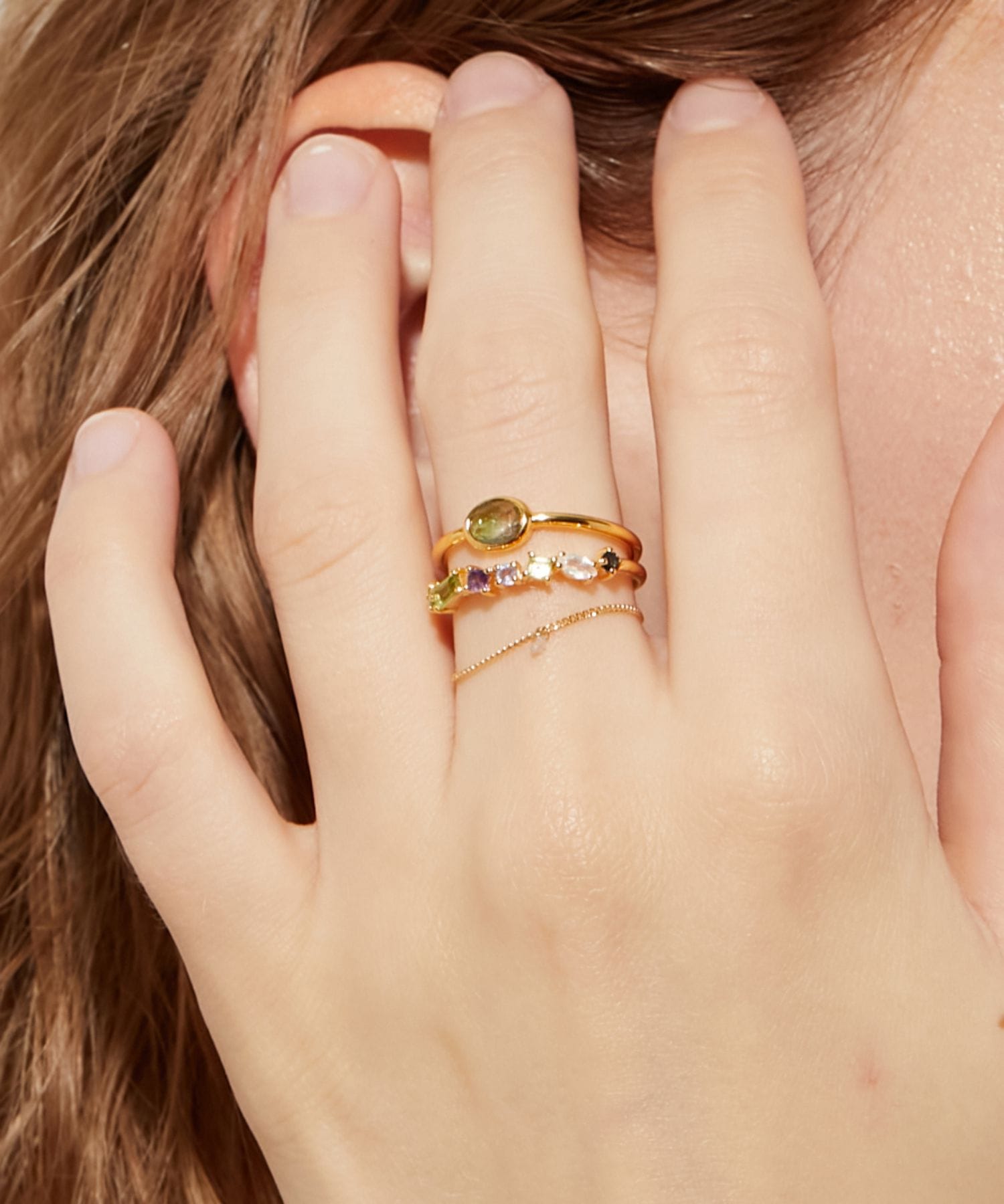 A special set of three limited-edition rings to add color to your holiday season. This ring features a simple bezel-wrapped, precious bicolor tourmaline discovered in Jaipur, India. This half eternity ring features a rhythmic array of multi-stones of different colors and shapes. This 18k gold chain ring features delicate diamonds. Wear them stacked on the same finger, strung together on different fingers, or individually. Enjoy the thrill of discovering your favorite combination. This multi-stone ring will feature one of the listed combinations. This item will be delivered in special packaging. Please note that gift wrapping is not available. We cherish the natural beauty of stones. We value the natural color, shape, size, and inclusions of natural stones, nurtured by the chance of time, as beautiful and unique features. Please note that this item cannot be resized. Thank you for your understanding.