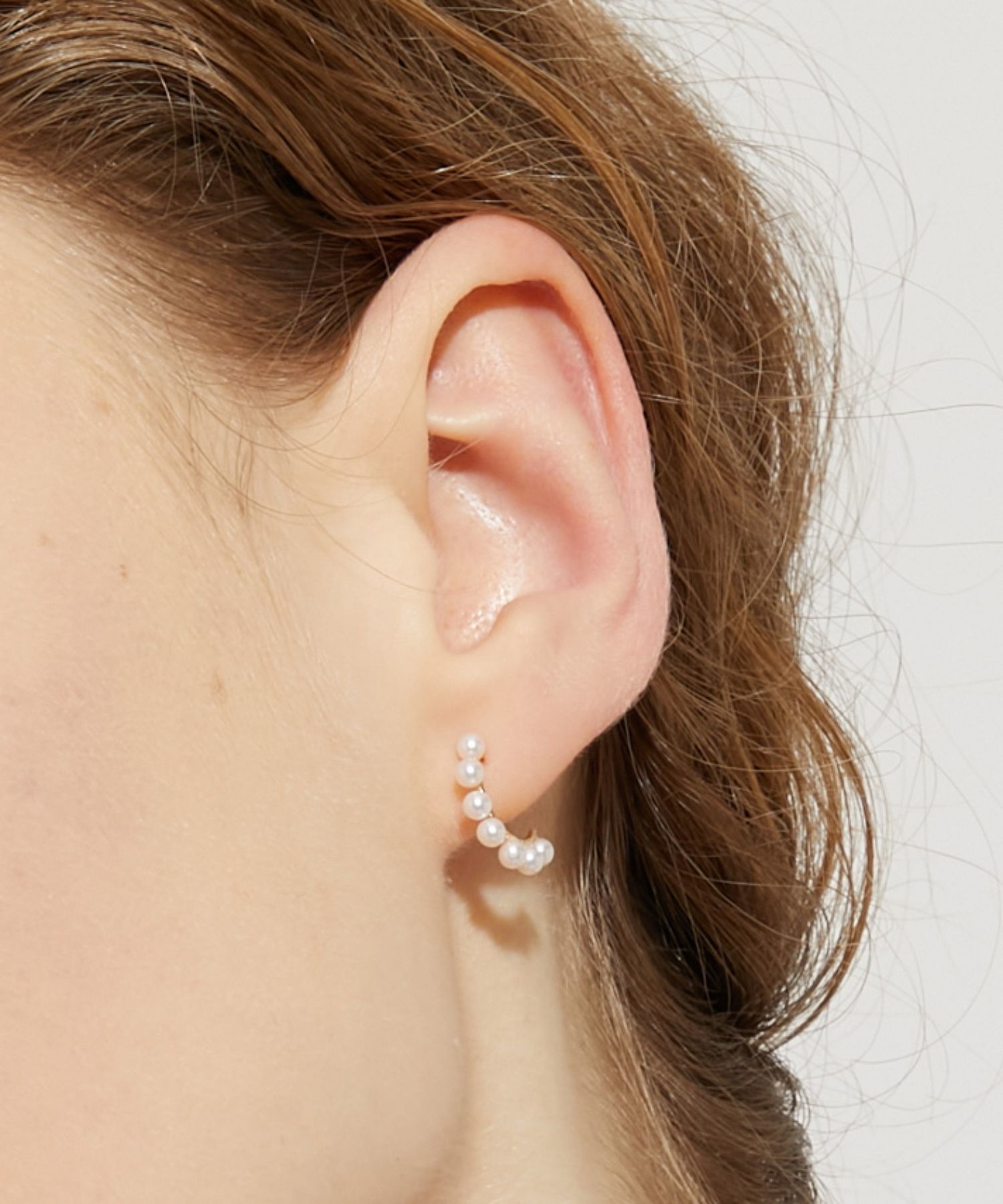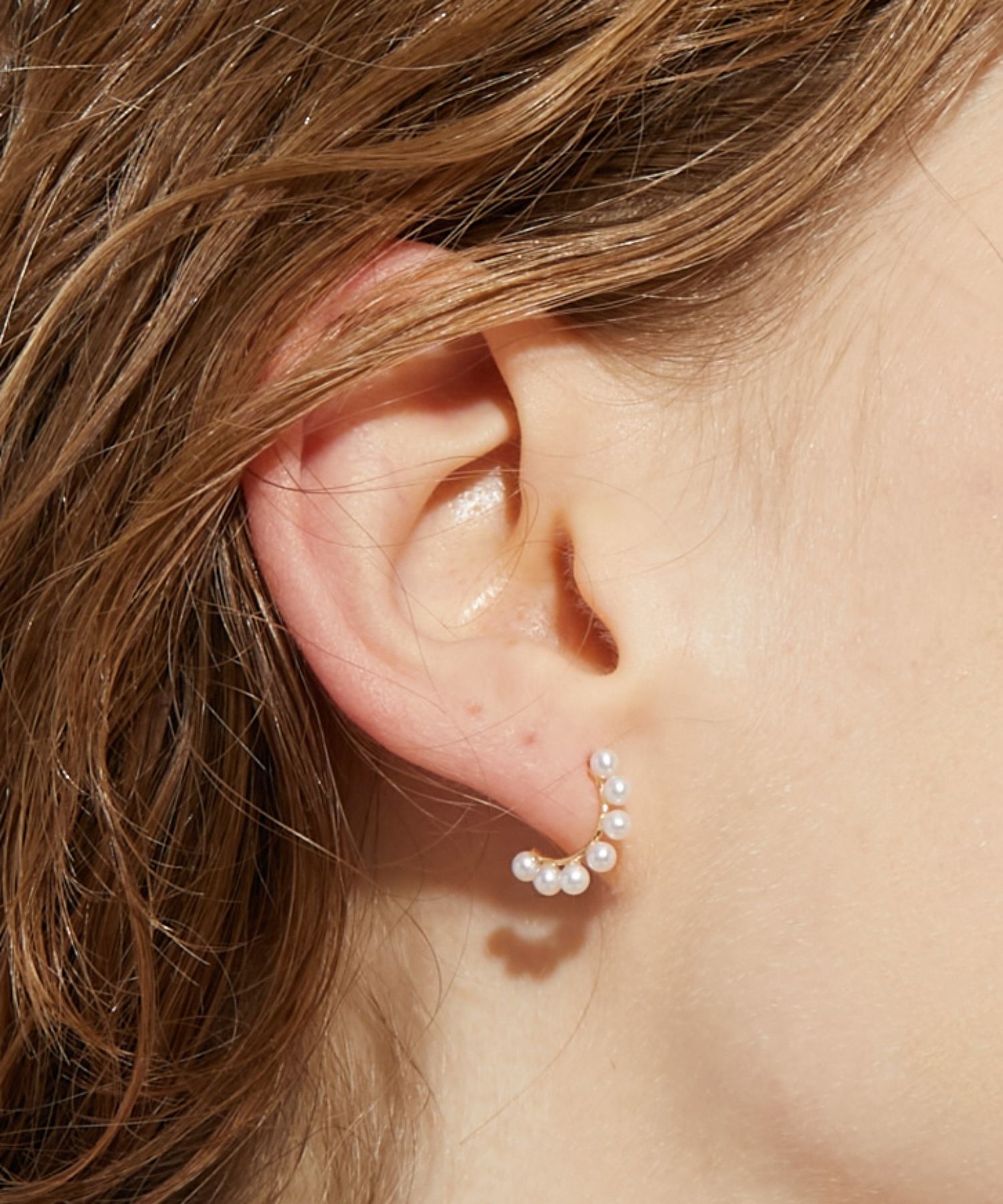 These adorable hoop earrings with small pearls are easy to match with any outfit. They are made of K10 material, so you can wear them with confidence.