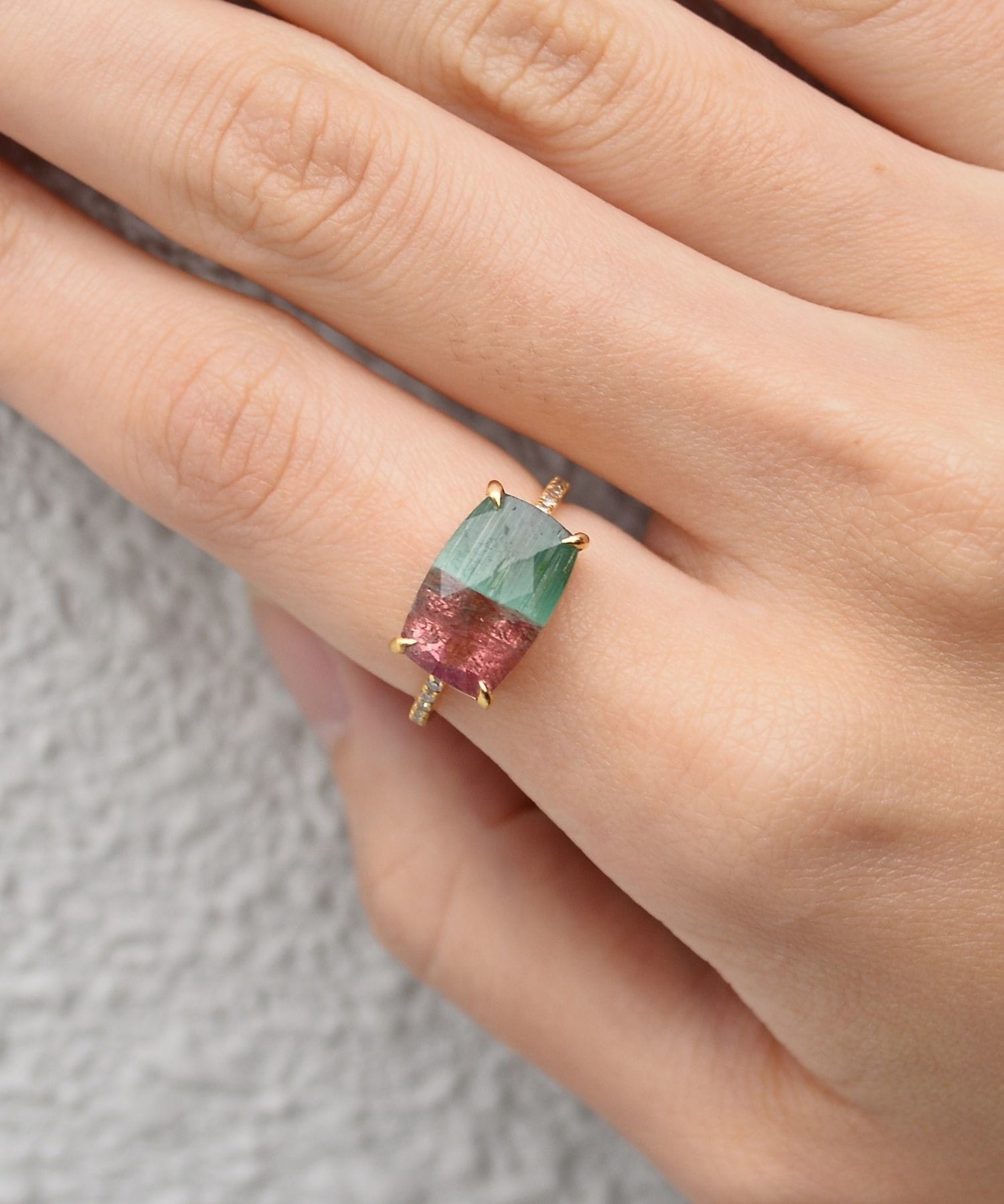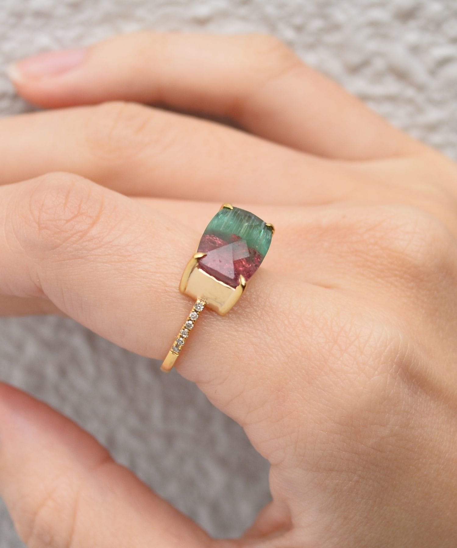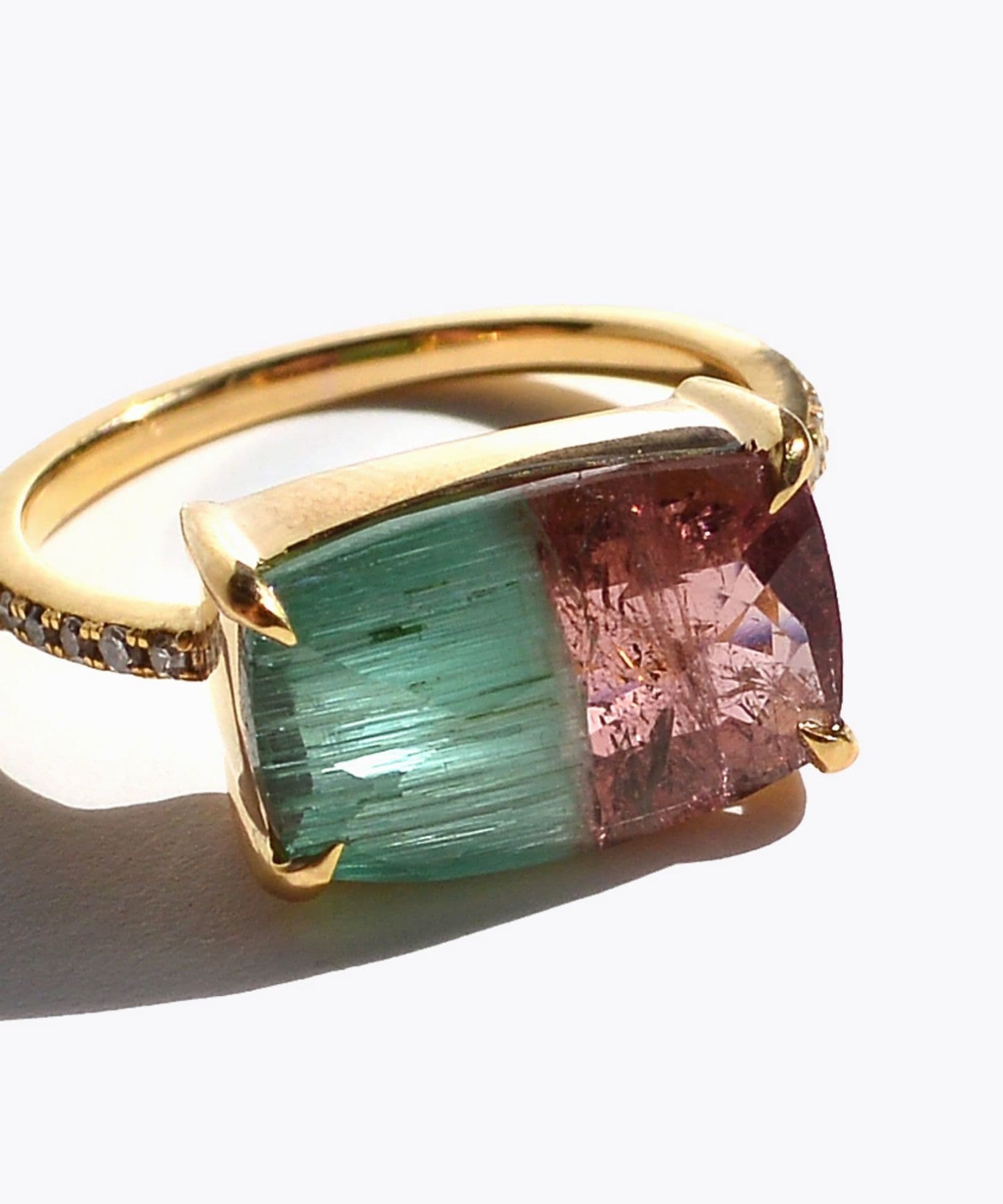 [elafonisi] One of a kind K10 bi color tourmaline pave diamond half eternity ring