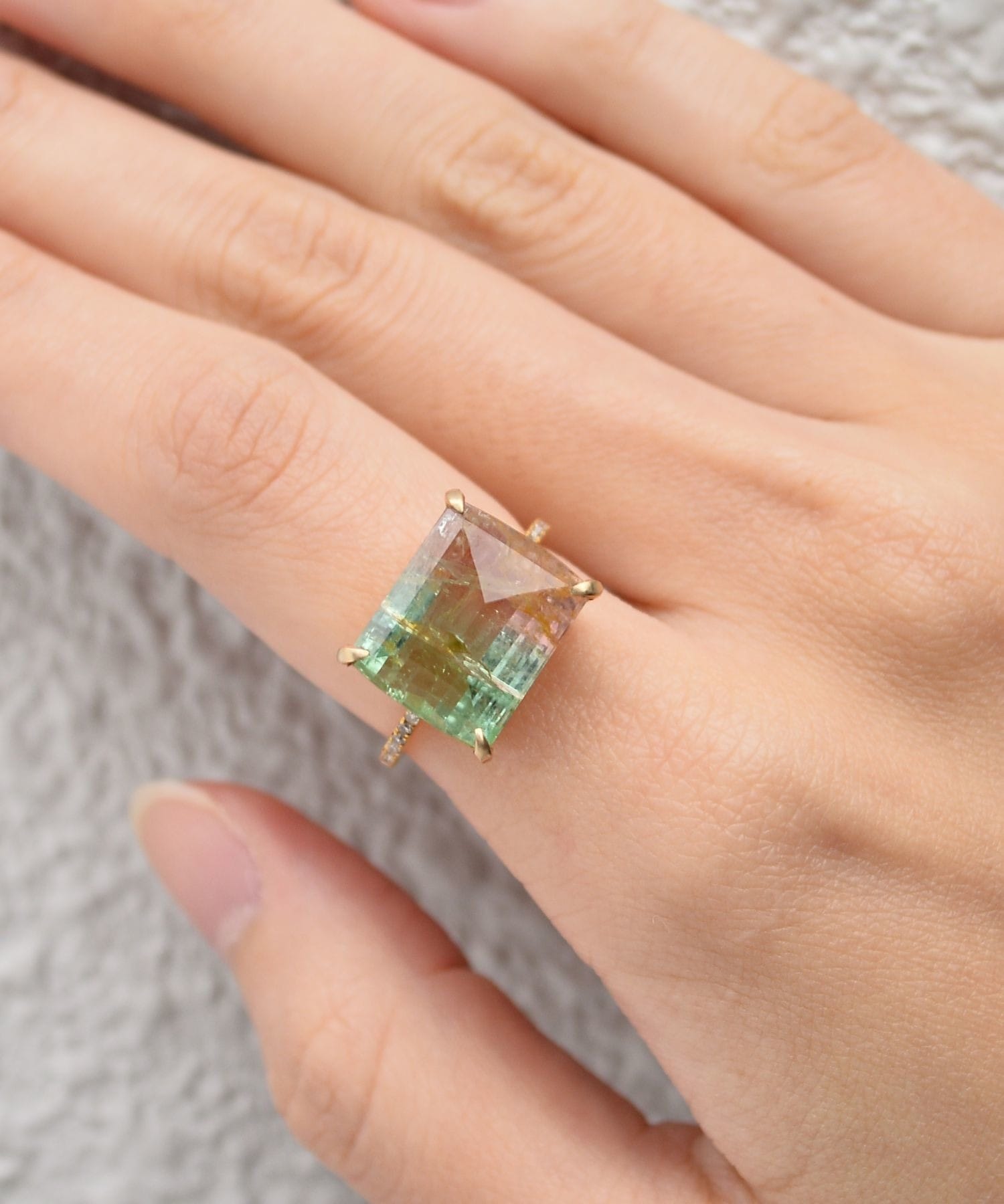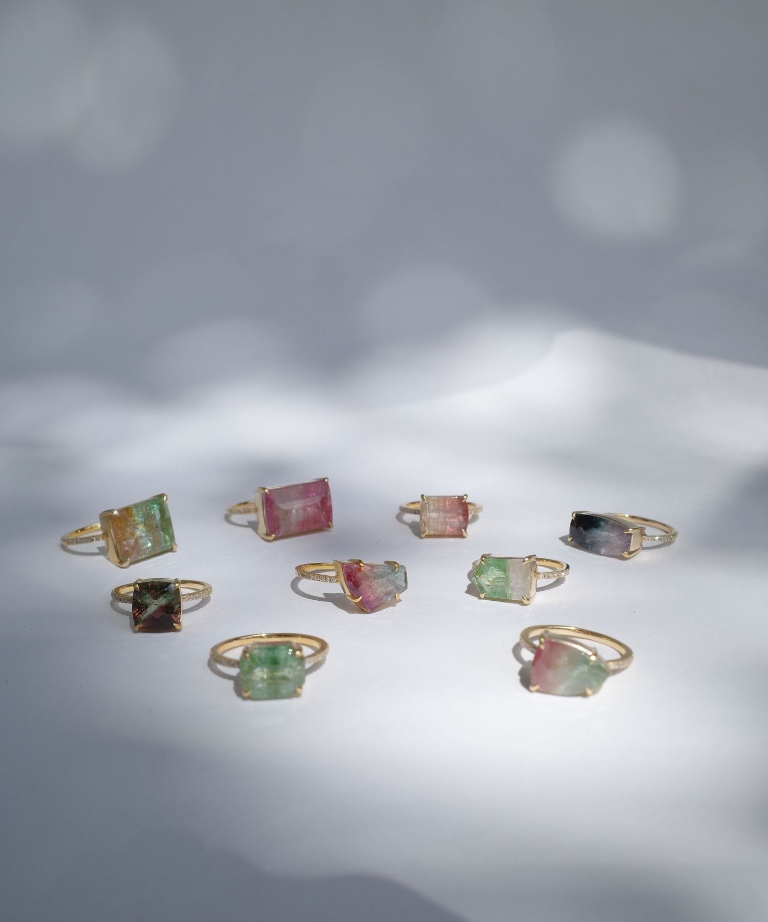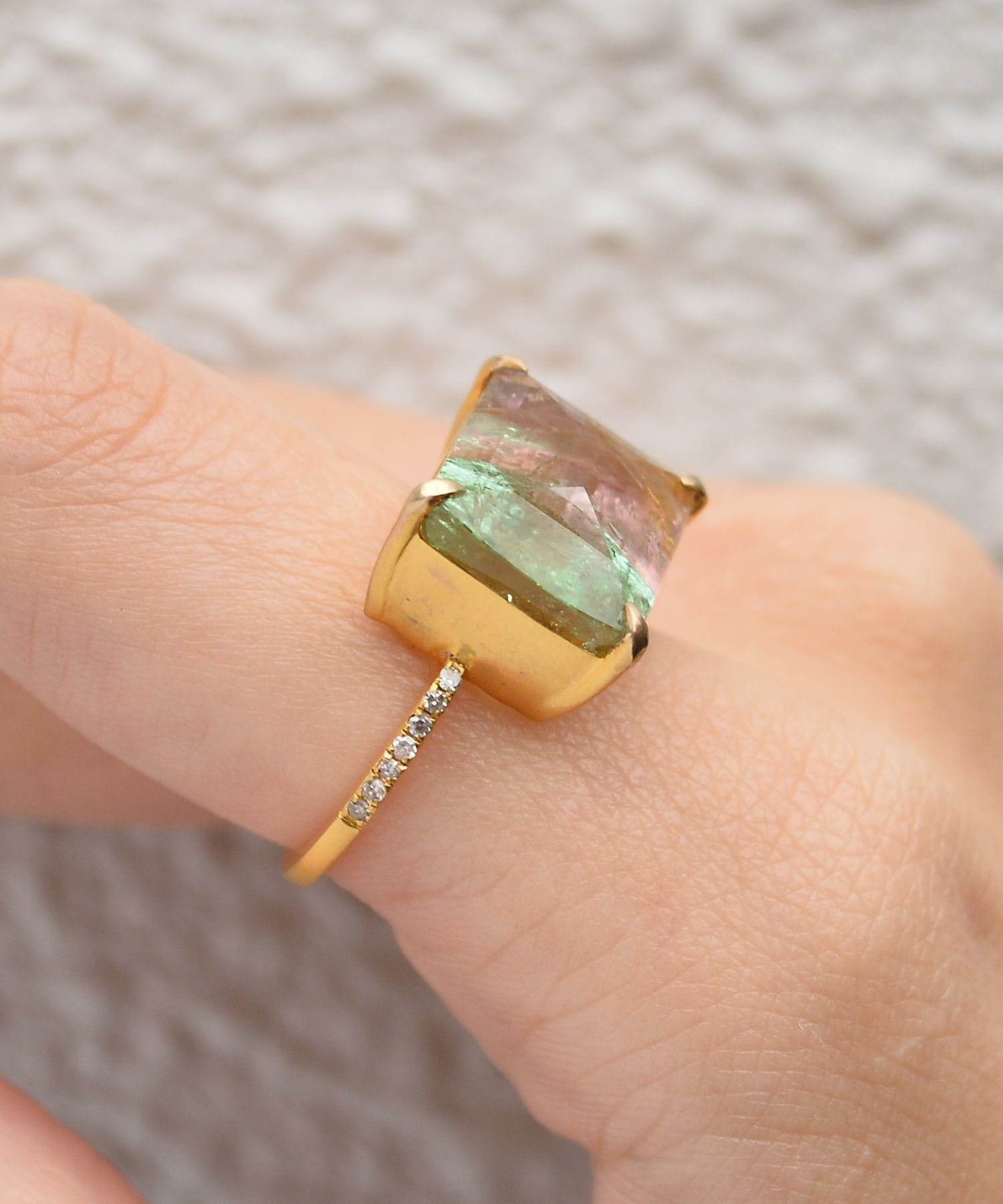[elafonisi] One of a kind K10 bi color tourmaline pave diamond half eternity ring