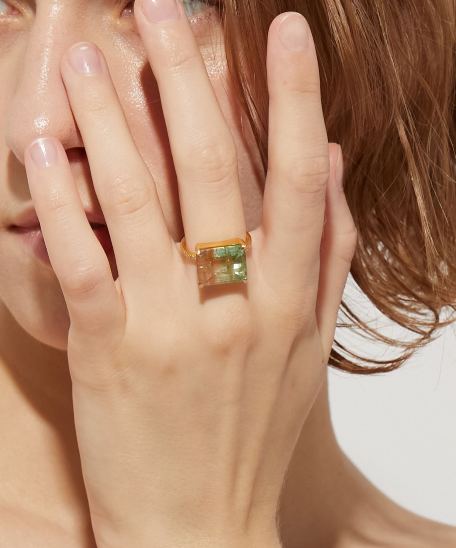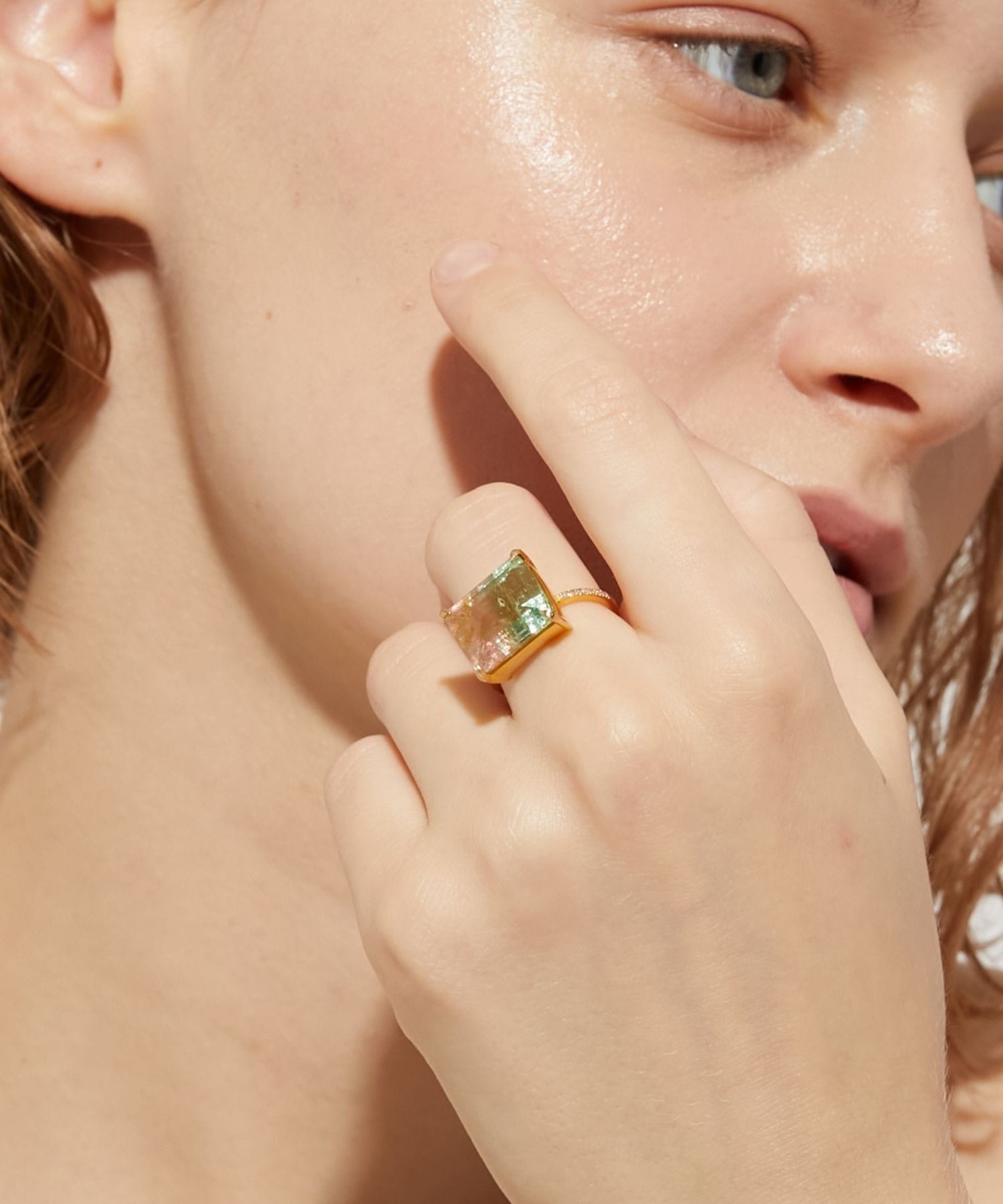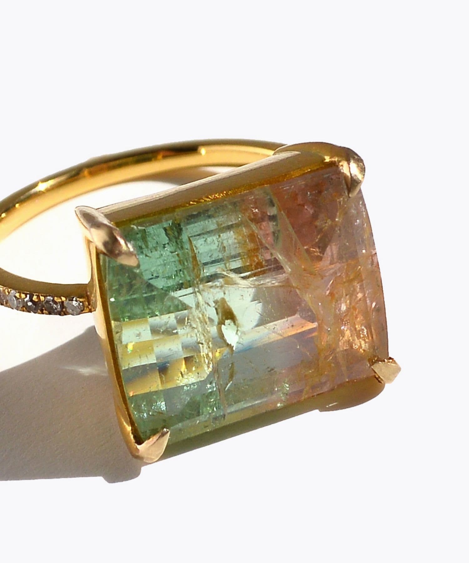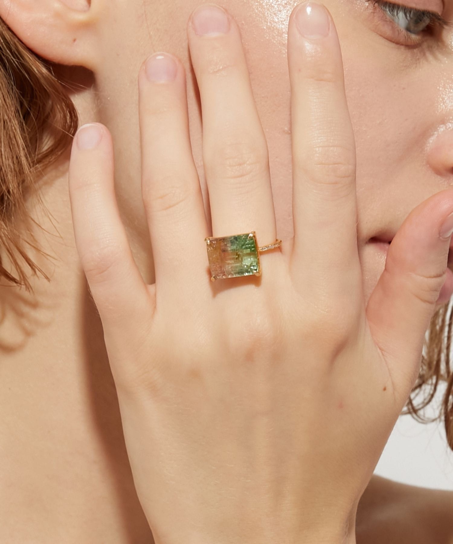 [elafonisi] One of a kind K10 bi color tourmaline pave diamond half eternity ring