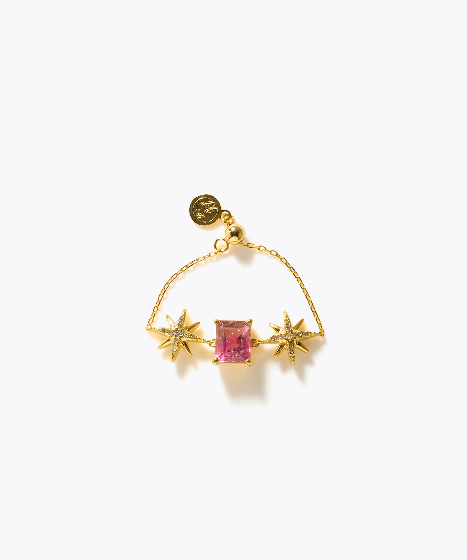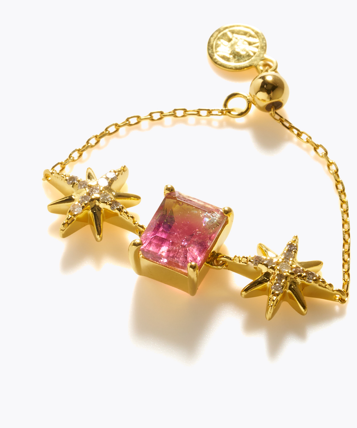 Featuring a vibrant two-tone tourmaline as the centerpiece, with a playful star motif, this chain ring will add color to the holiday season.