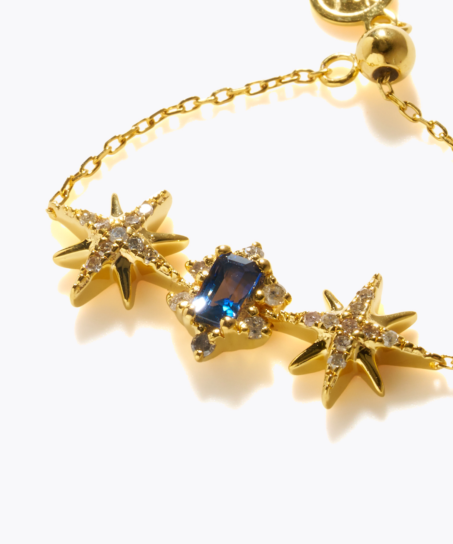 This one-of-a-kind collection combines various celestial motifs with unique natural stones.