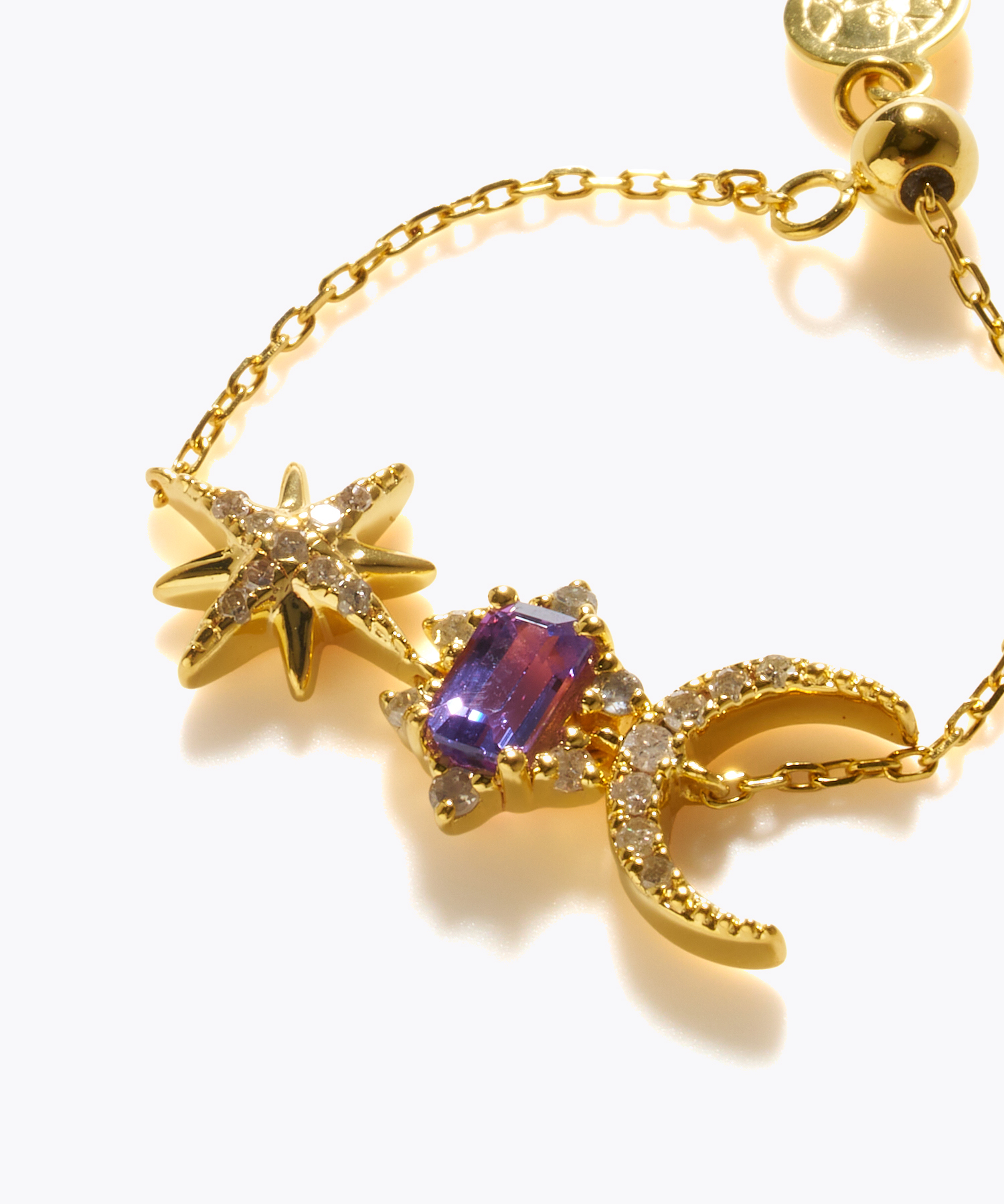 This one-of-a-kind collection combines various celestial motifs with unique natural stones.