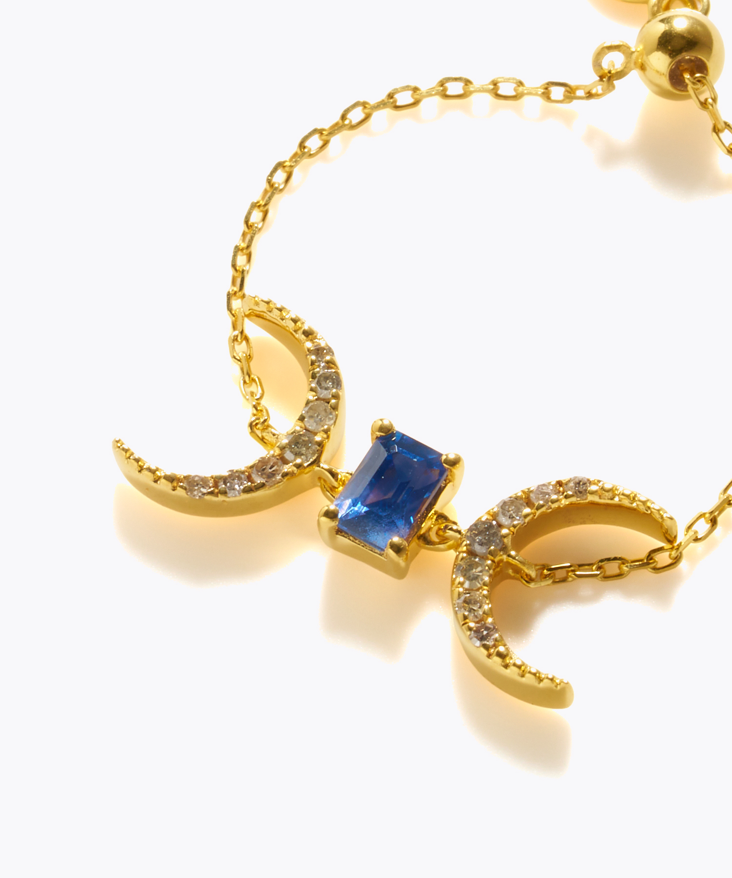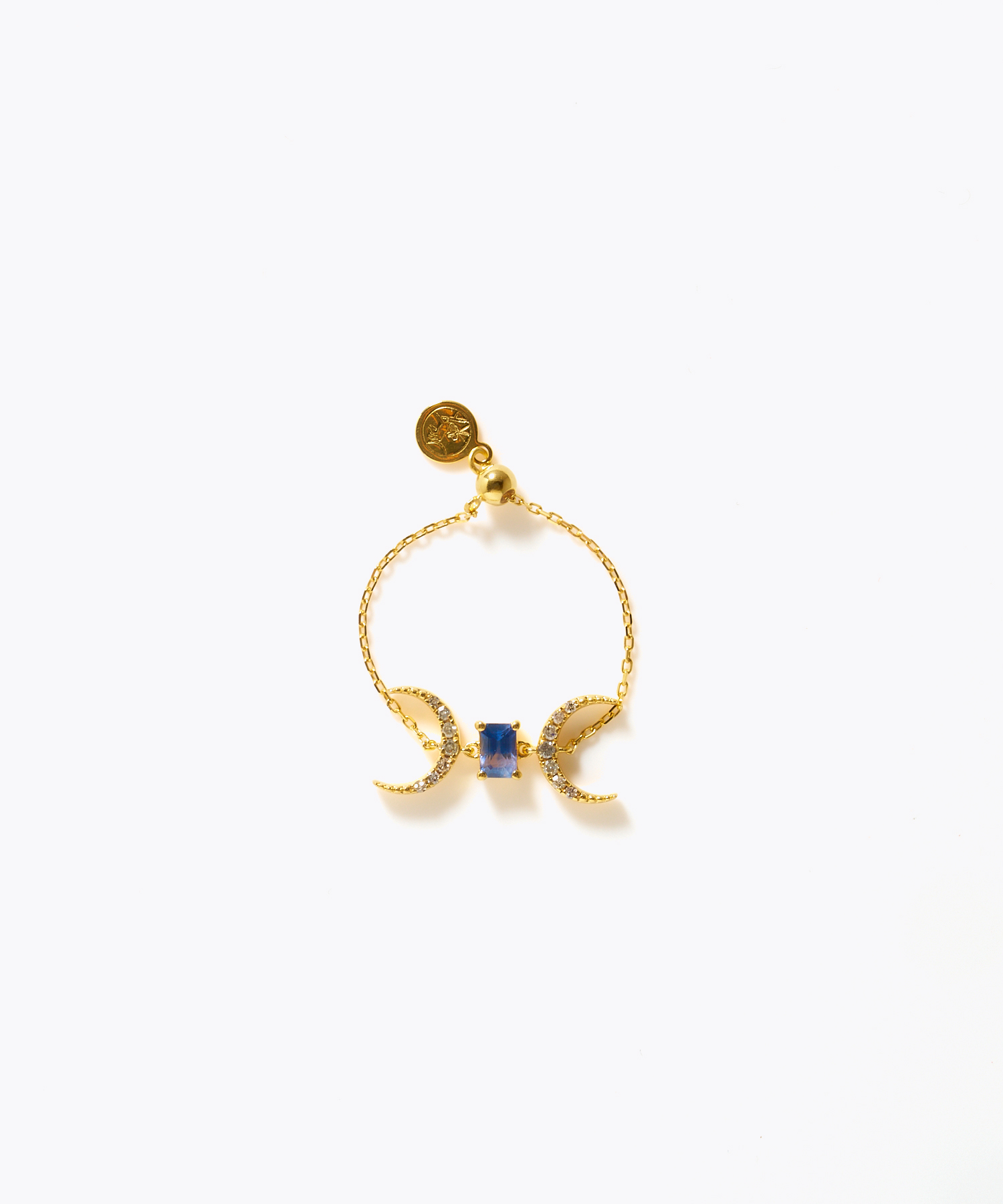 This chain ring will brighten up the holiday season, featuring a vibrant two-tone sapphire as the main feature and a playful moon motif.