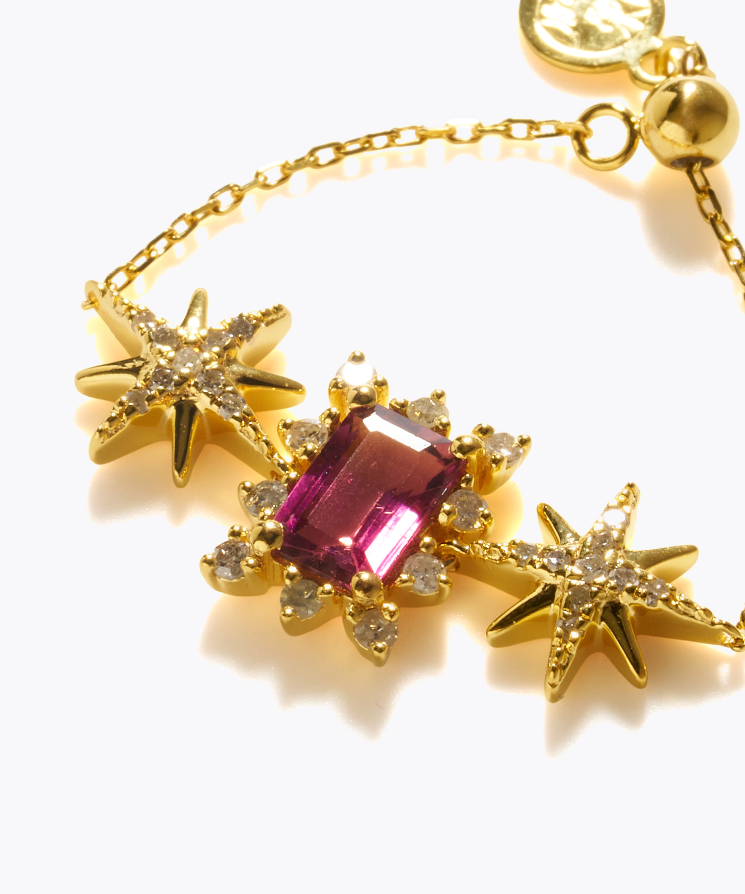 Featuring vibrant multicolored tourmaline as the centerpiece, with a playful star motif, this chain ring will add color to the holiday season.