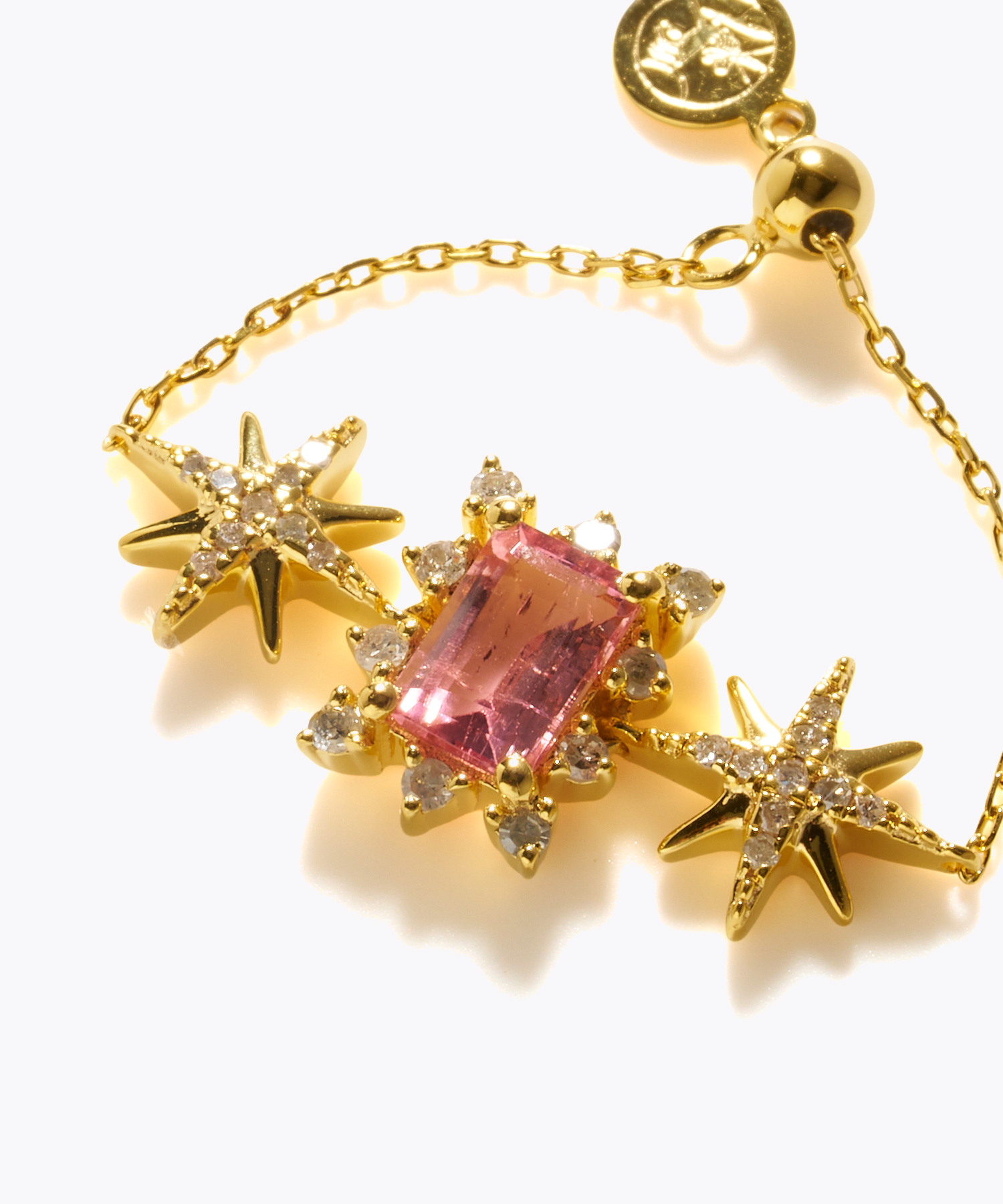 [glimmer] 【2025 Winter Limited】One of a kind K10 multiple tourmaline double star pave diamond chain ring