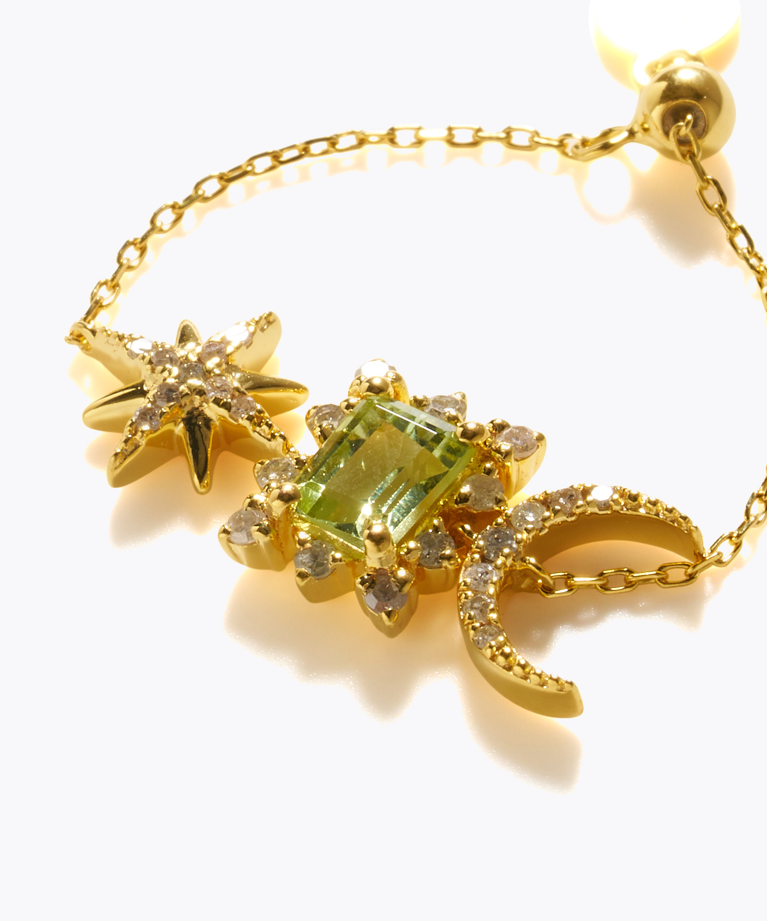 [glimmer] 【2025 Winter Limited】One of a kind K10 multiple tourmaline double moon star pave diamond chain ring