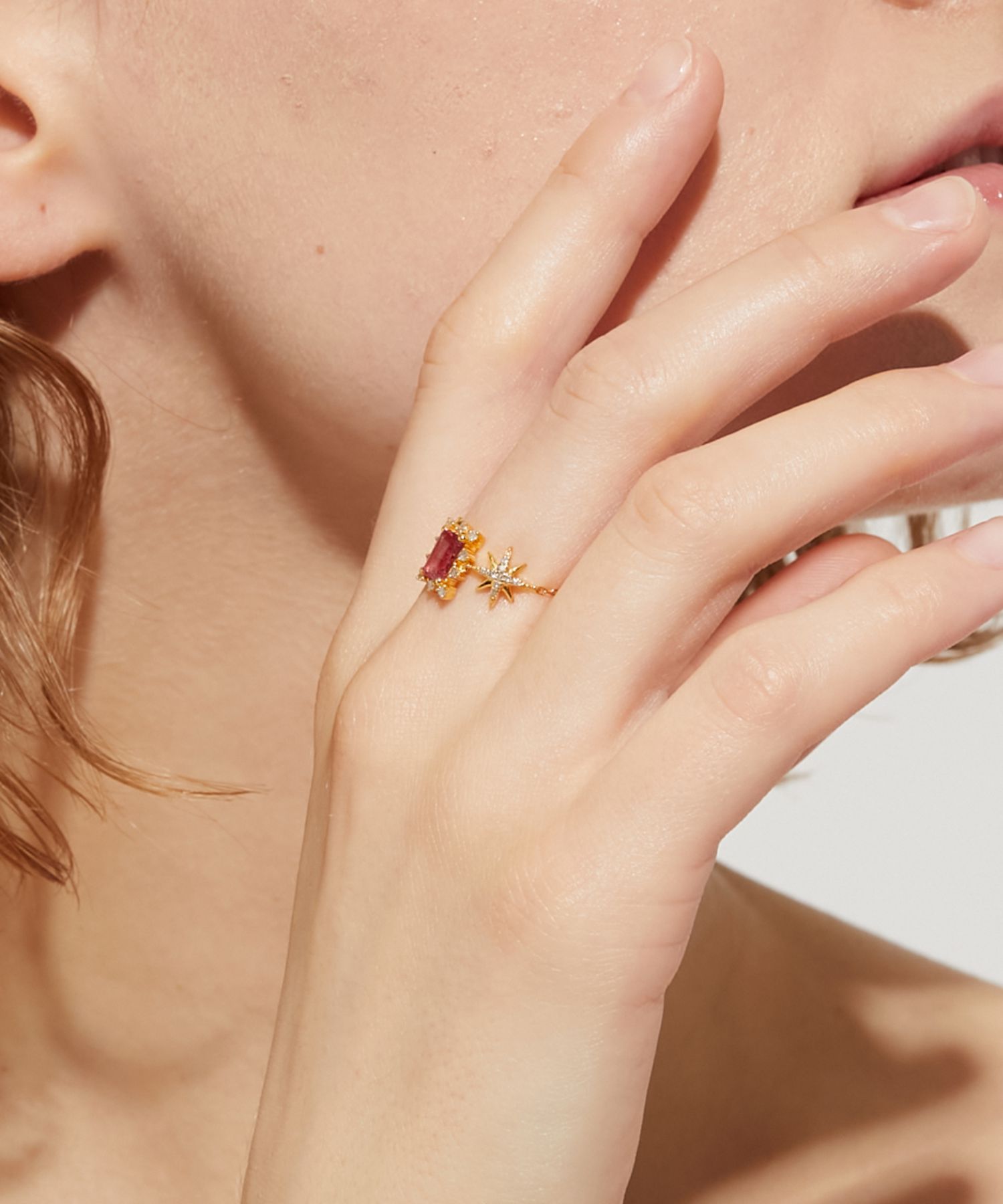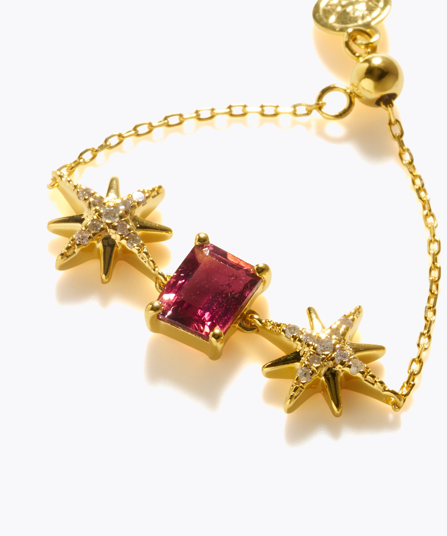 [glimmer] 【2025 Winter Limited】One of a kind K10 multiple tourmaline double star diamond chain ring