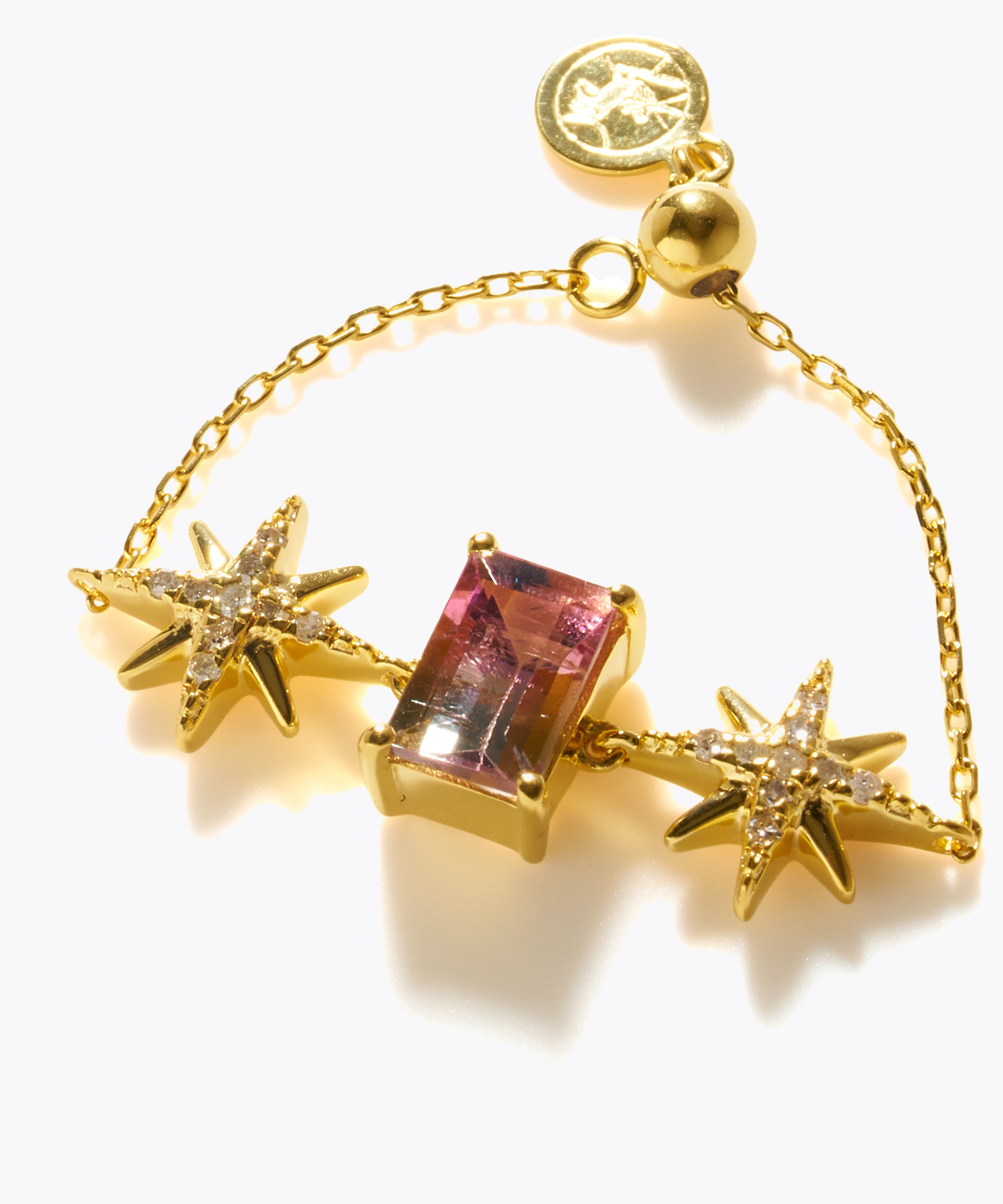 [glimmer] 【2025 Winter Limited】One of a kind K10 multiple tourmaline double star diamond chain ring