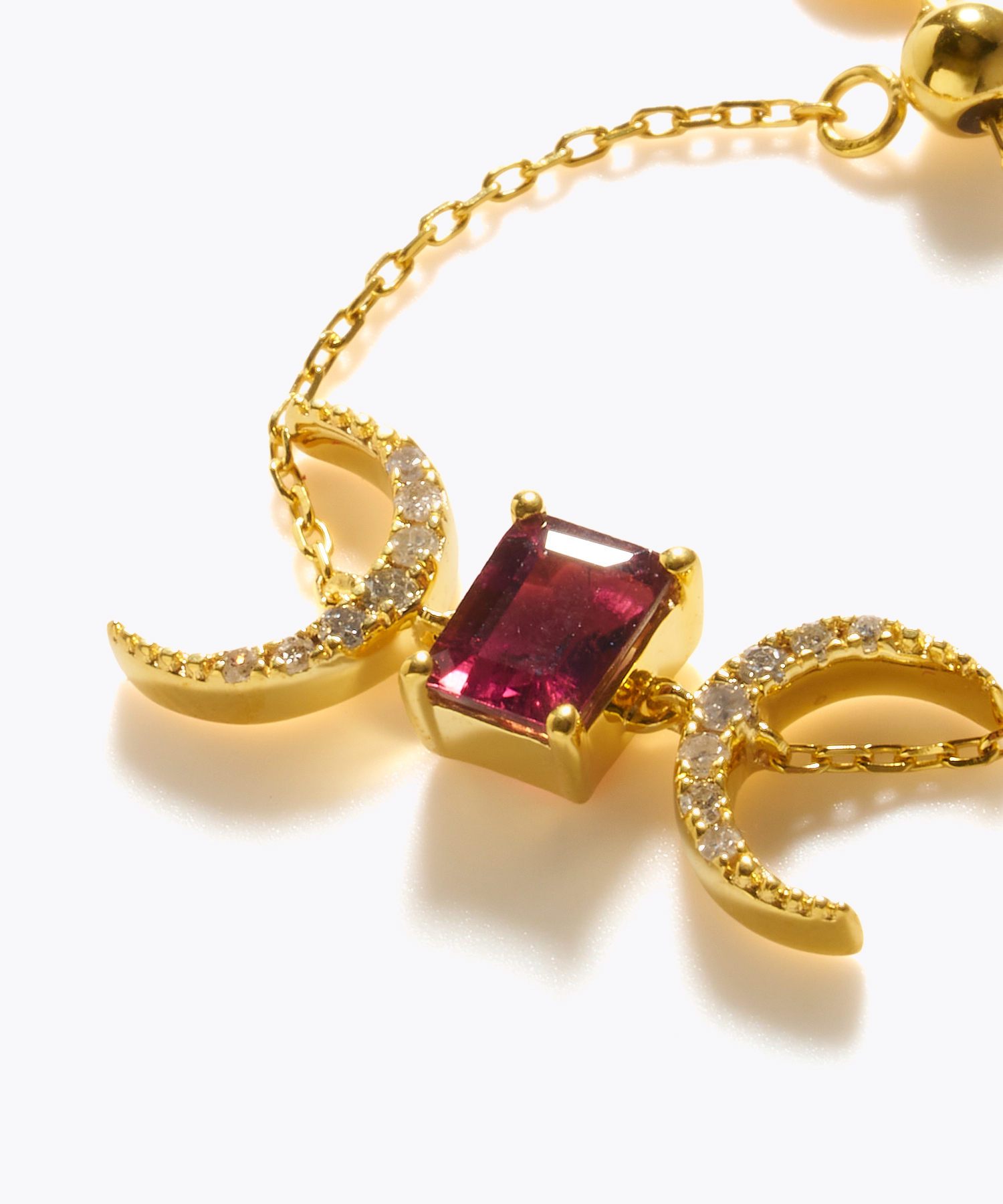 Featuring vibrant multicolored tourmaline as the centerpiece, with a playful moon motif, this chain ring will brighten up the holiday season.