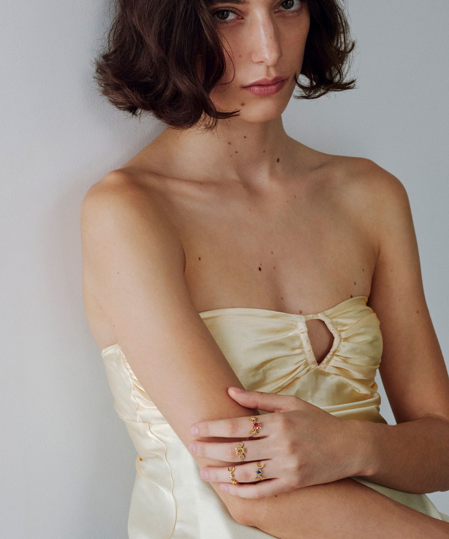 This one-of-a-kind collection combines various celestial motifs with unique natural stones.