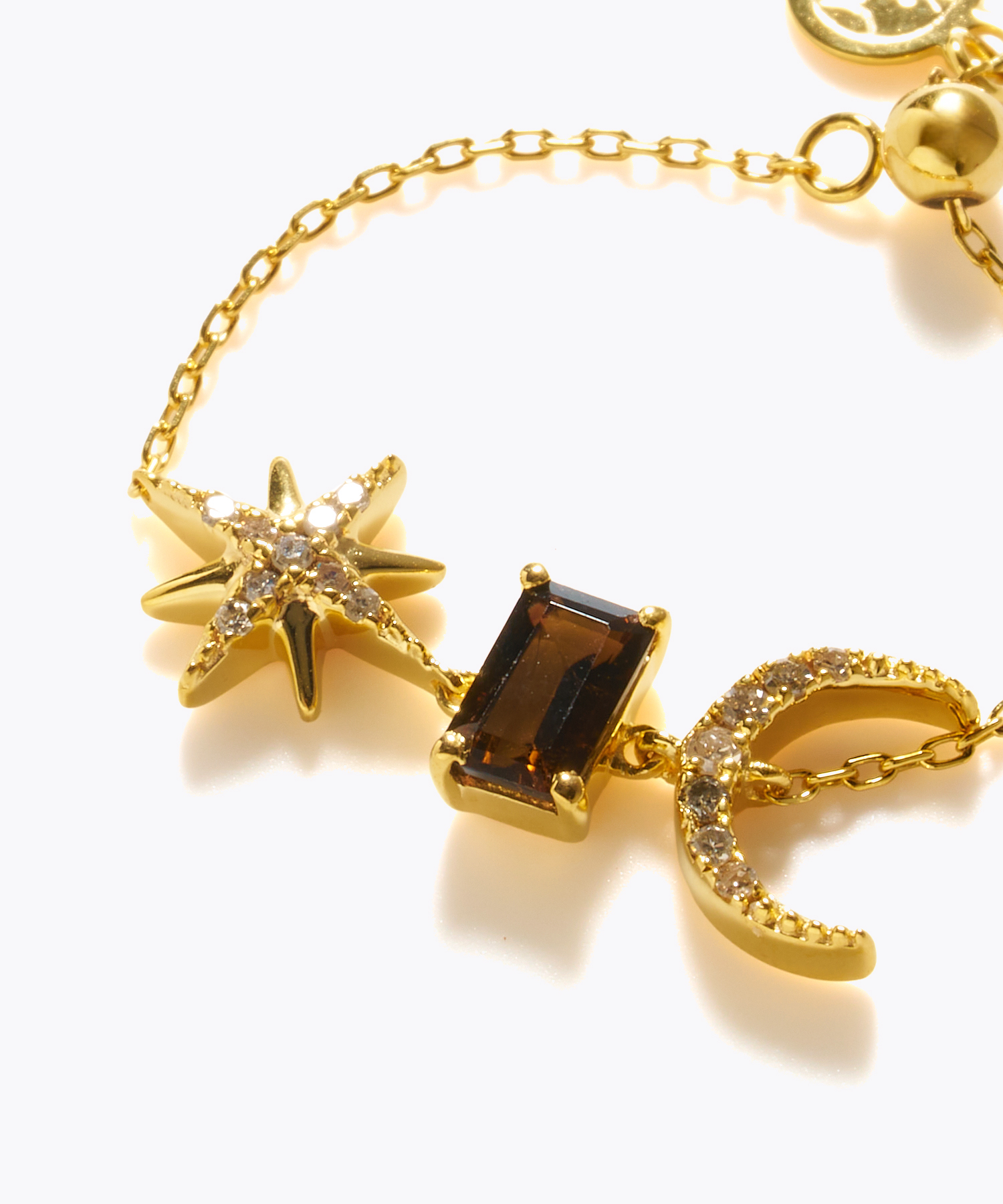 [glimmer] 【2025 Winter Limited】One of a kind K10 multiple tourmaline double moon star diamond chain ring