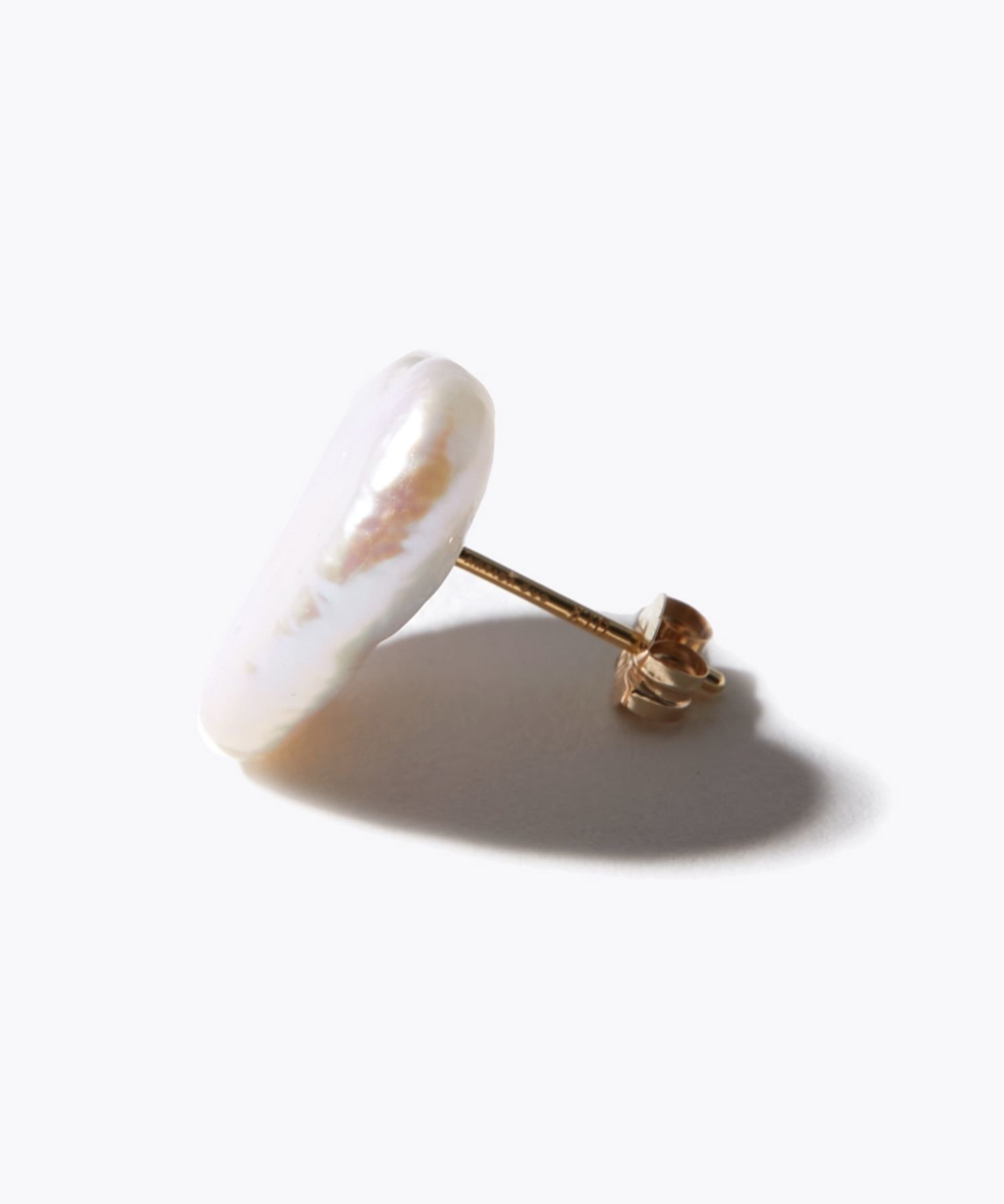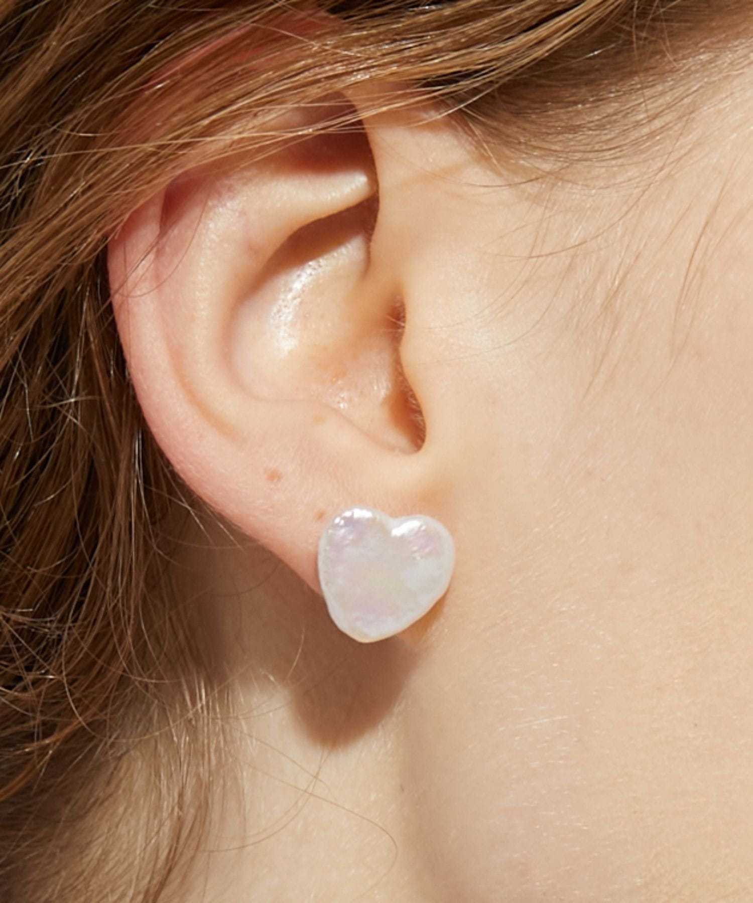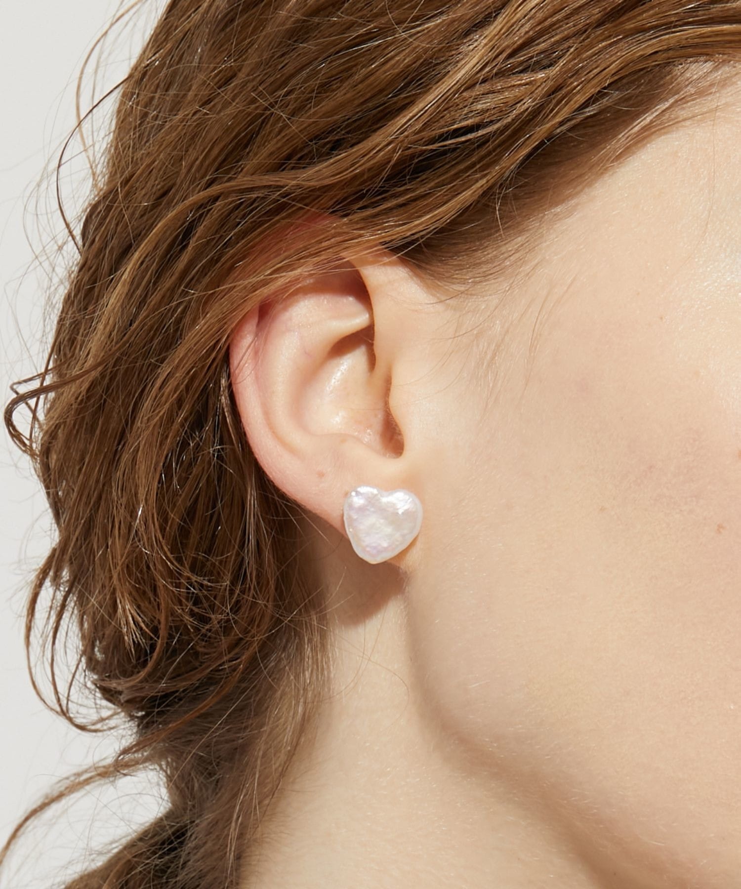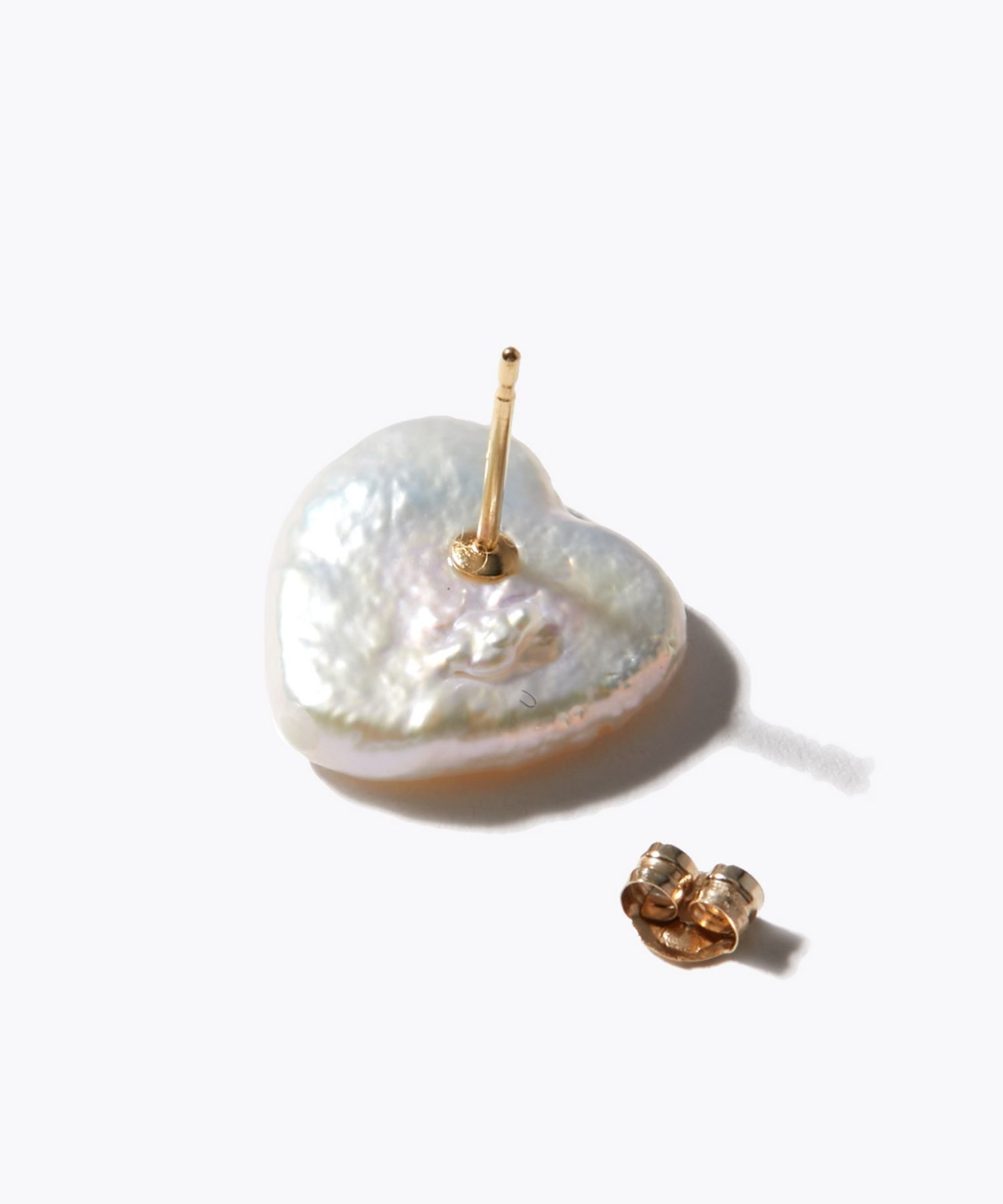 These adorable pearl stud earrings feature a unique heart shape. Crafted simply with a 10K post, they can be worn on one ear or as a pair. The natural, uneven shape gives them a soft, individual character without being overly sweet, adding a subtle, fresh touch.