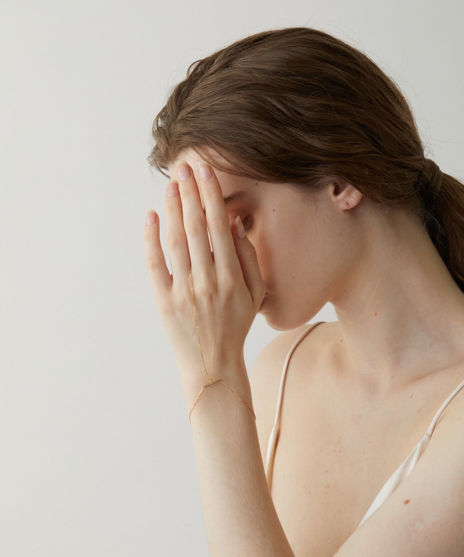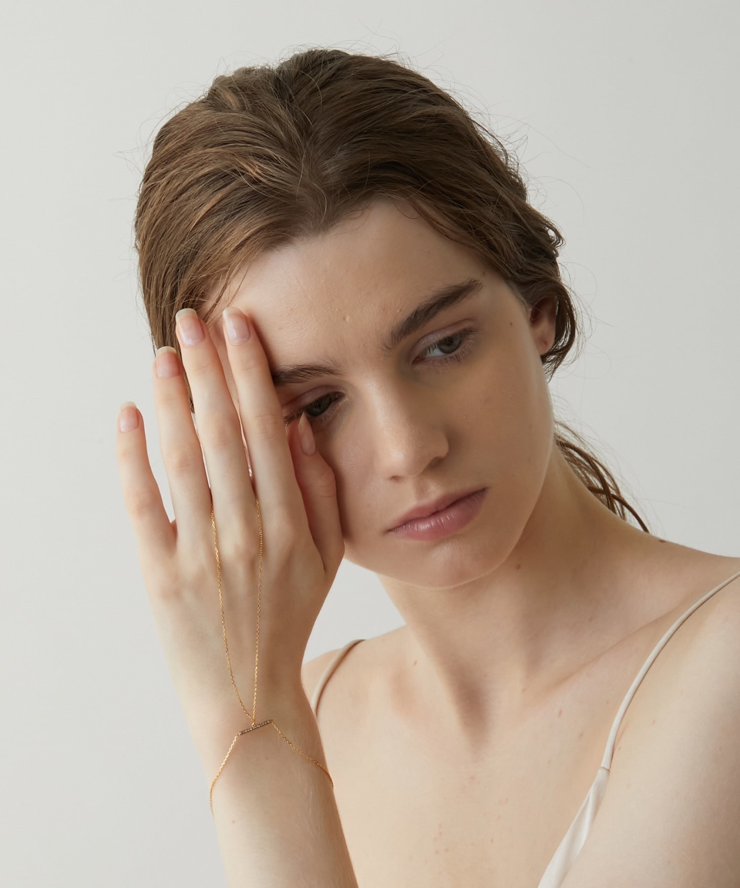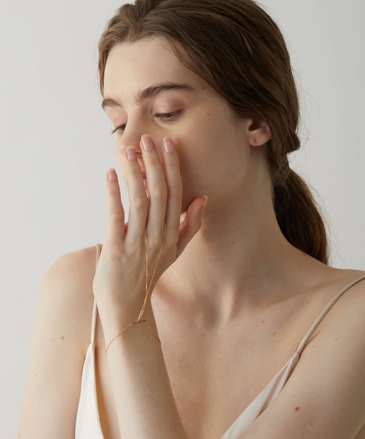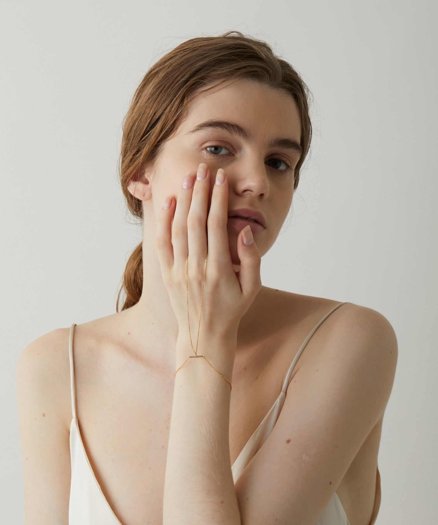 Subtly sensual looking by putting on graceful gold around your hand. Matching with rings gives you a fresh impression.