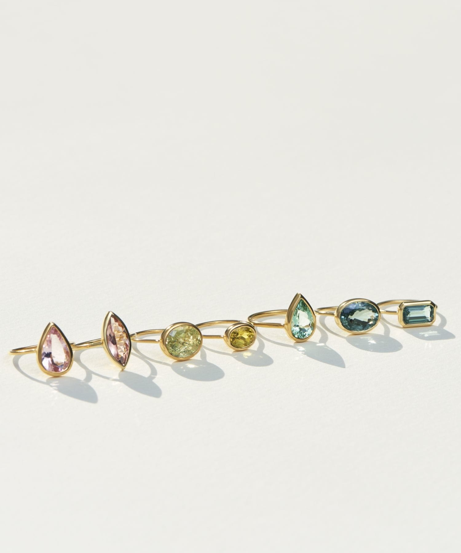 A one-of-a-kind item made from tourmaline with strong and rich colors. Each tourmaline is different in size, shape, and color. The ring is designed fully with assortment of voluminous and rare cut stones we found in Jaipur, and made with silver and K18YG plating. Enjoy your time choosing your one-of-a-kind favorite.