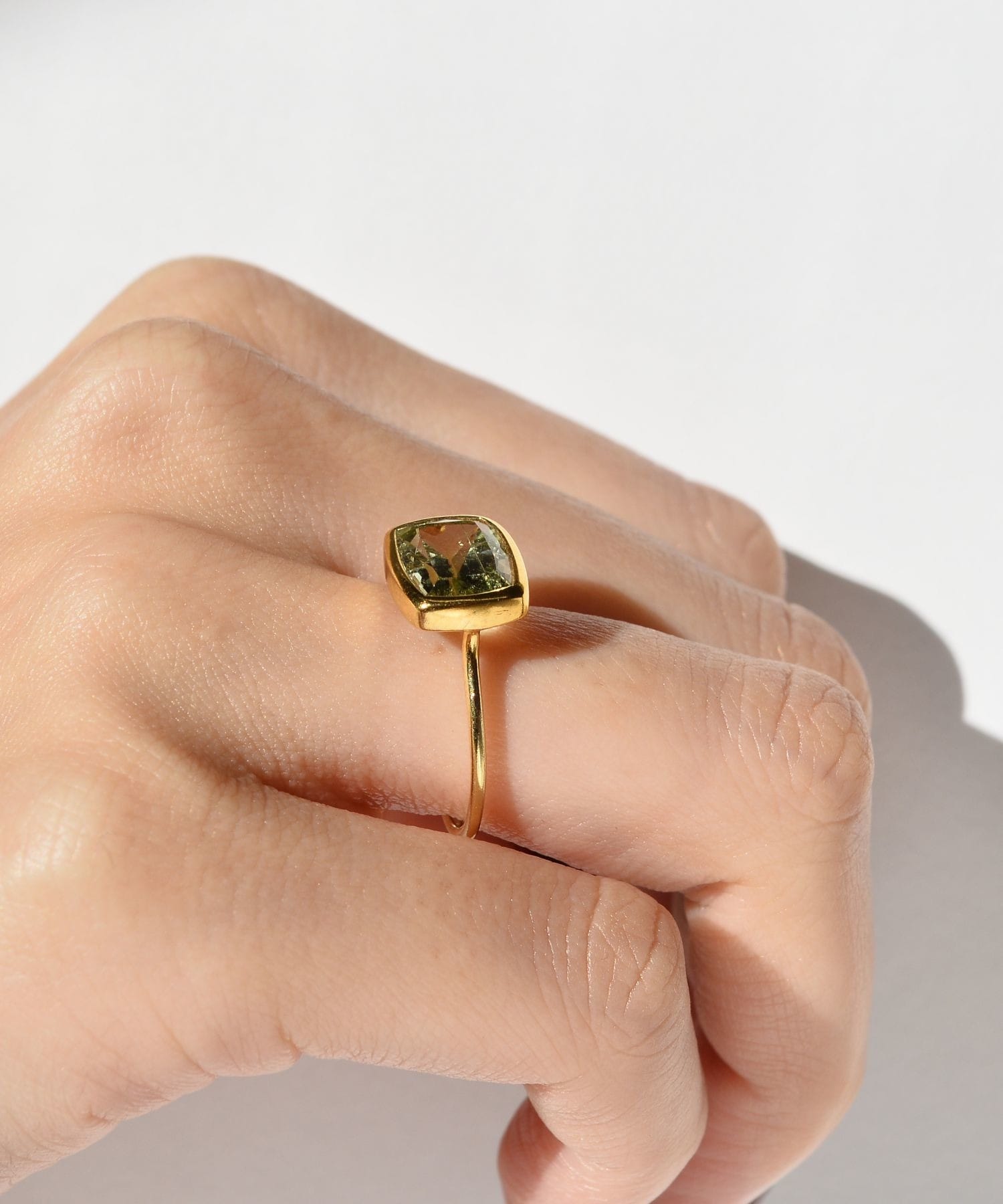 A one-of-a-kind item made from tourmaline with strong and rich colors. Each tourmaline is different in size, shape, and color. The ring is designed fully with assortment of voluminous and rare cut stones we found in Jaipur, and made with silver and K18YG plating. Enjoy your time choosing your one-of-a-kind favorite.