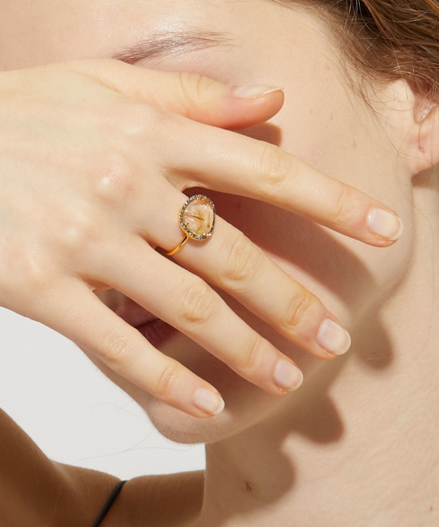 Accessories from our black rhodium series provide unique styles with chic, glittering brown diamonds coated with black rhodium plating. The craftsmen in Jaipur set natural single-cut diamond one by one on the 925 sterling silver accessory by their hands. After K18YG coating was applied to these accessories, their surfaces set on the diamonds are elaborately coated with black rhodium plating. Sparkling sophisticated brown diamonds and using unique hand techniques during most of accessory-making processes will create their natural, supple beauty.