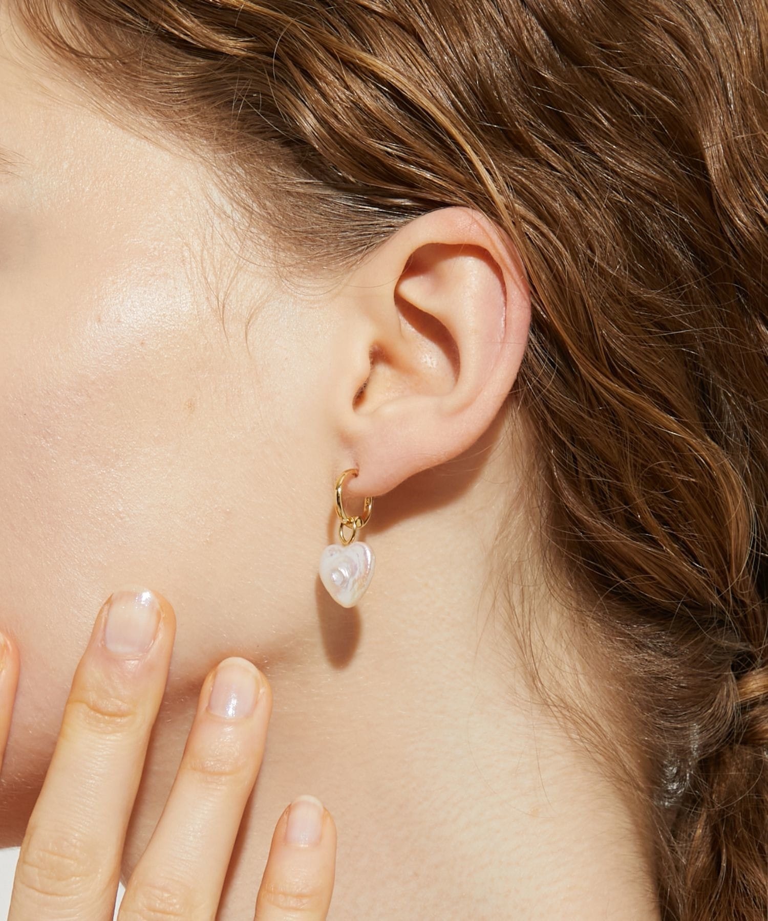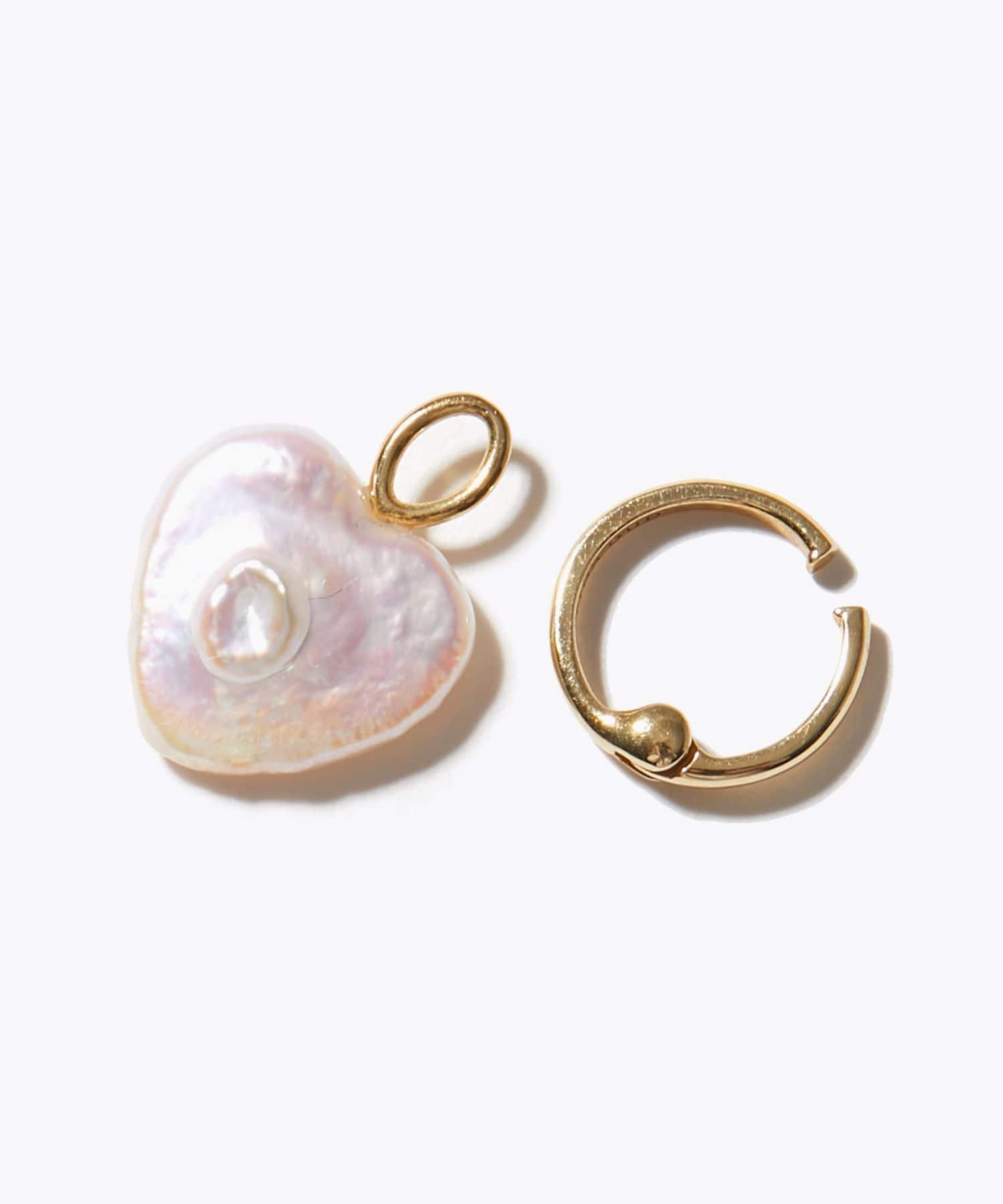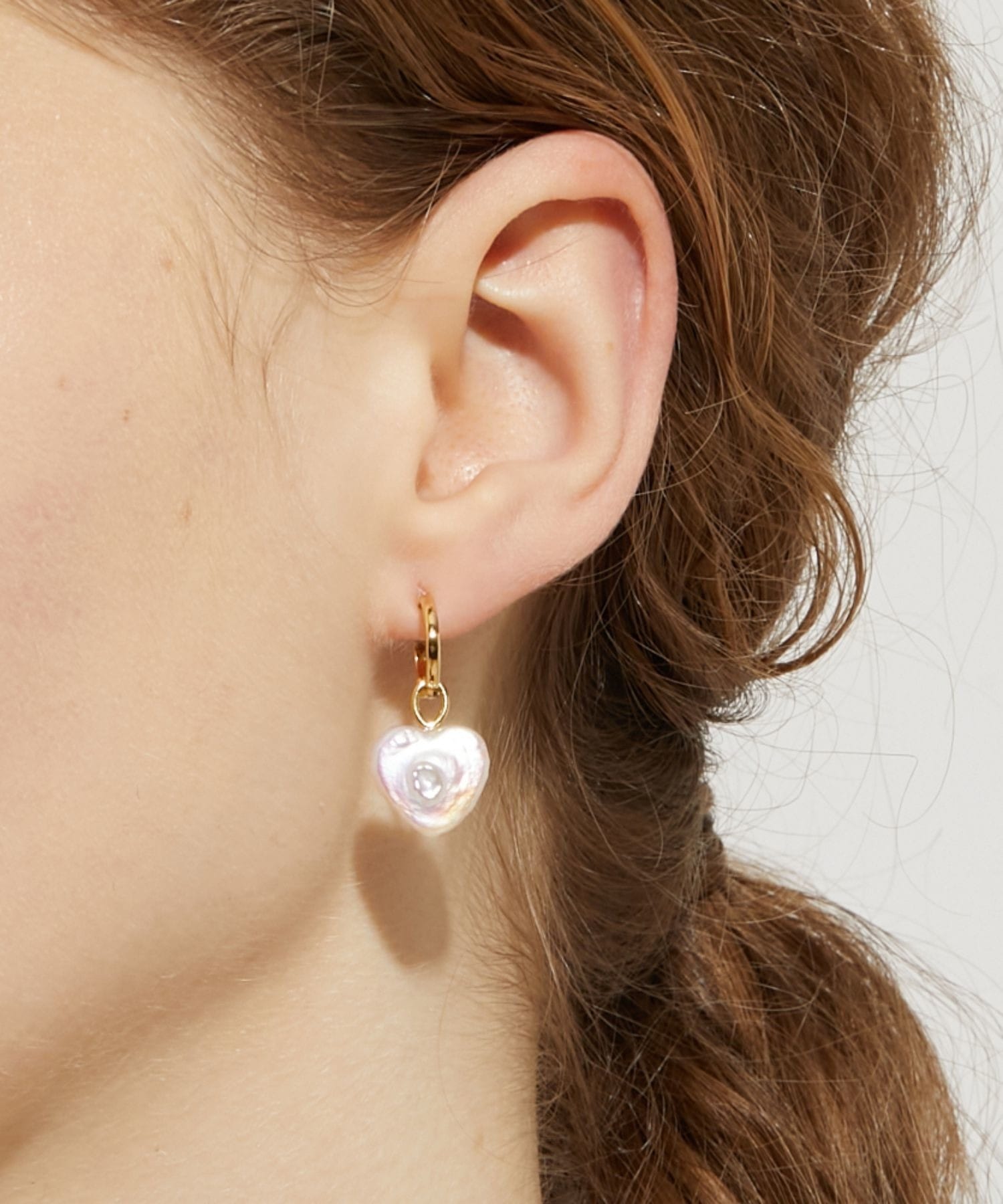 These adorable pearl earrings feature a unique heart shape. The back of the earrings is adjustable, allowing you to adjust the fit to your liking, creating a new and comfortable feeling. The charms are removable, so you can enjoy wearing them individually in different ways.