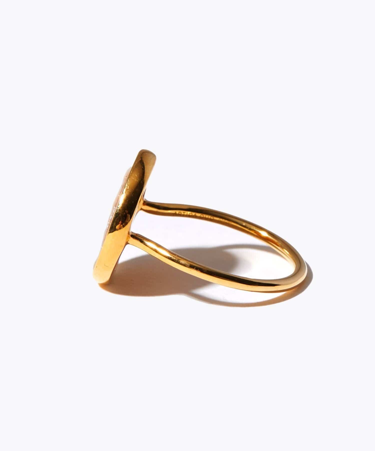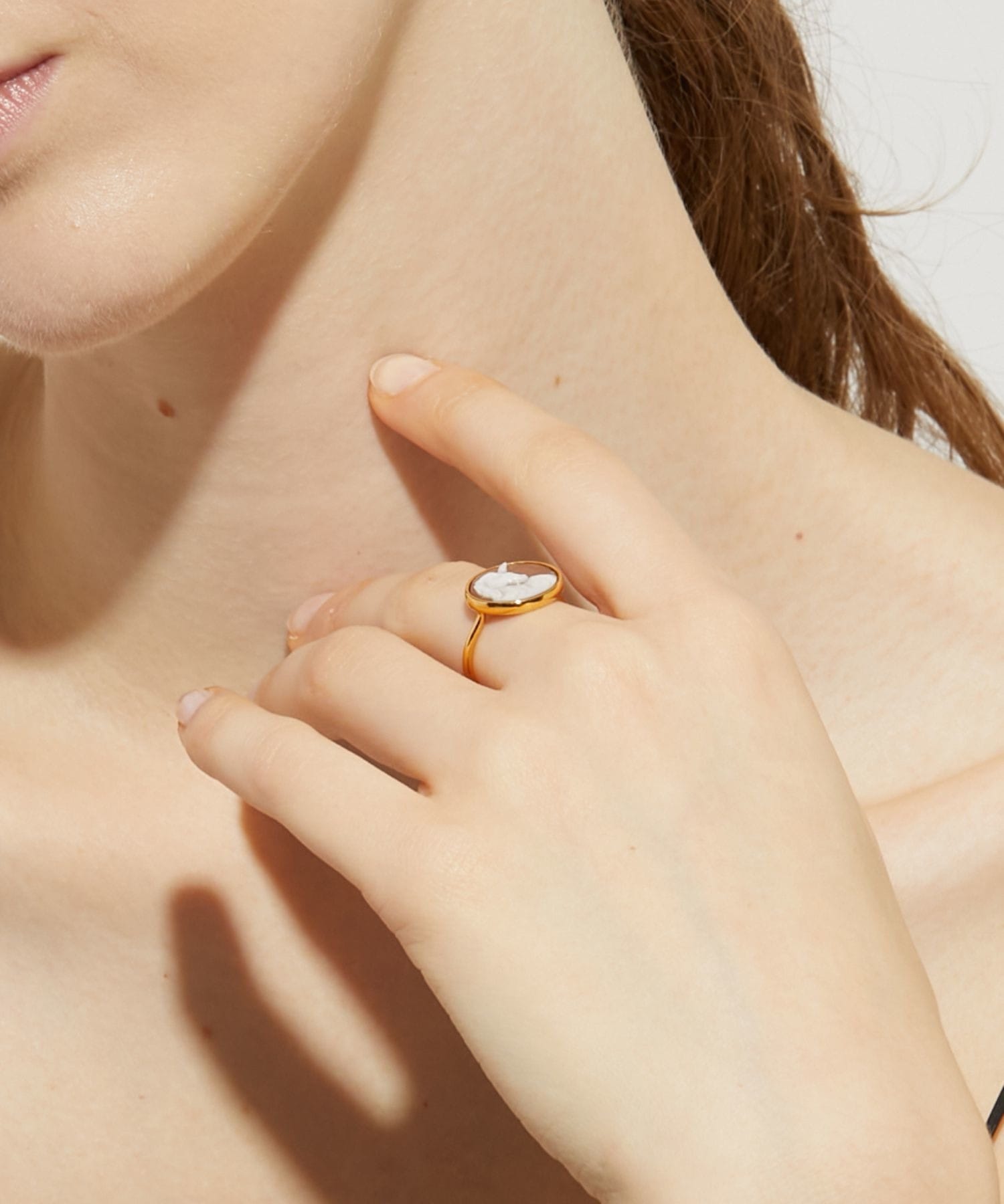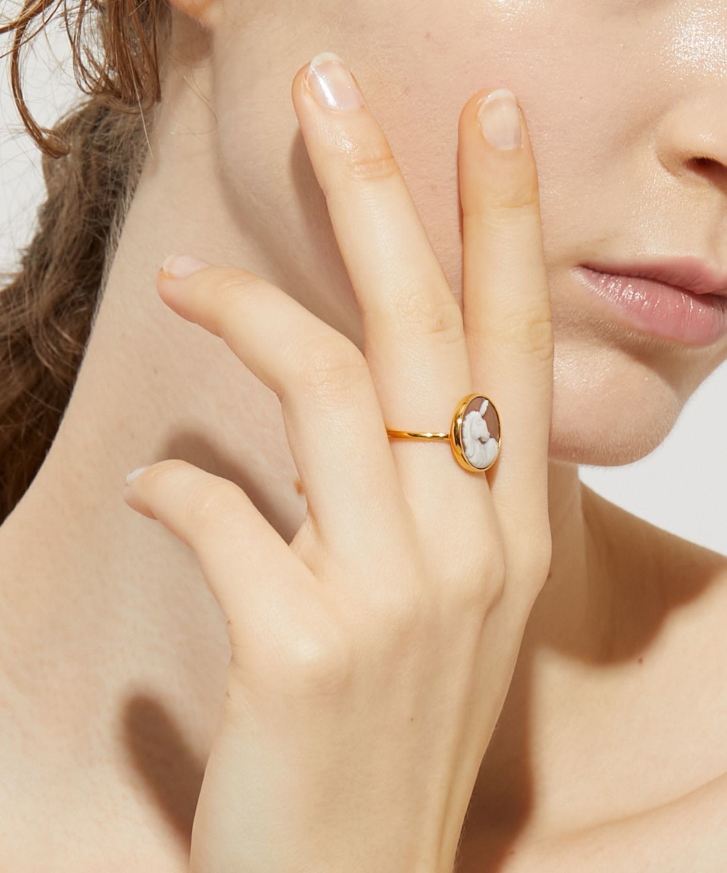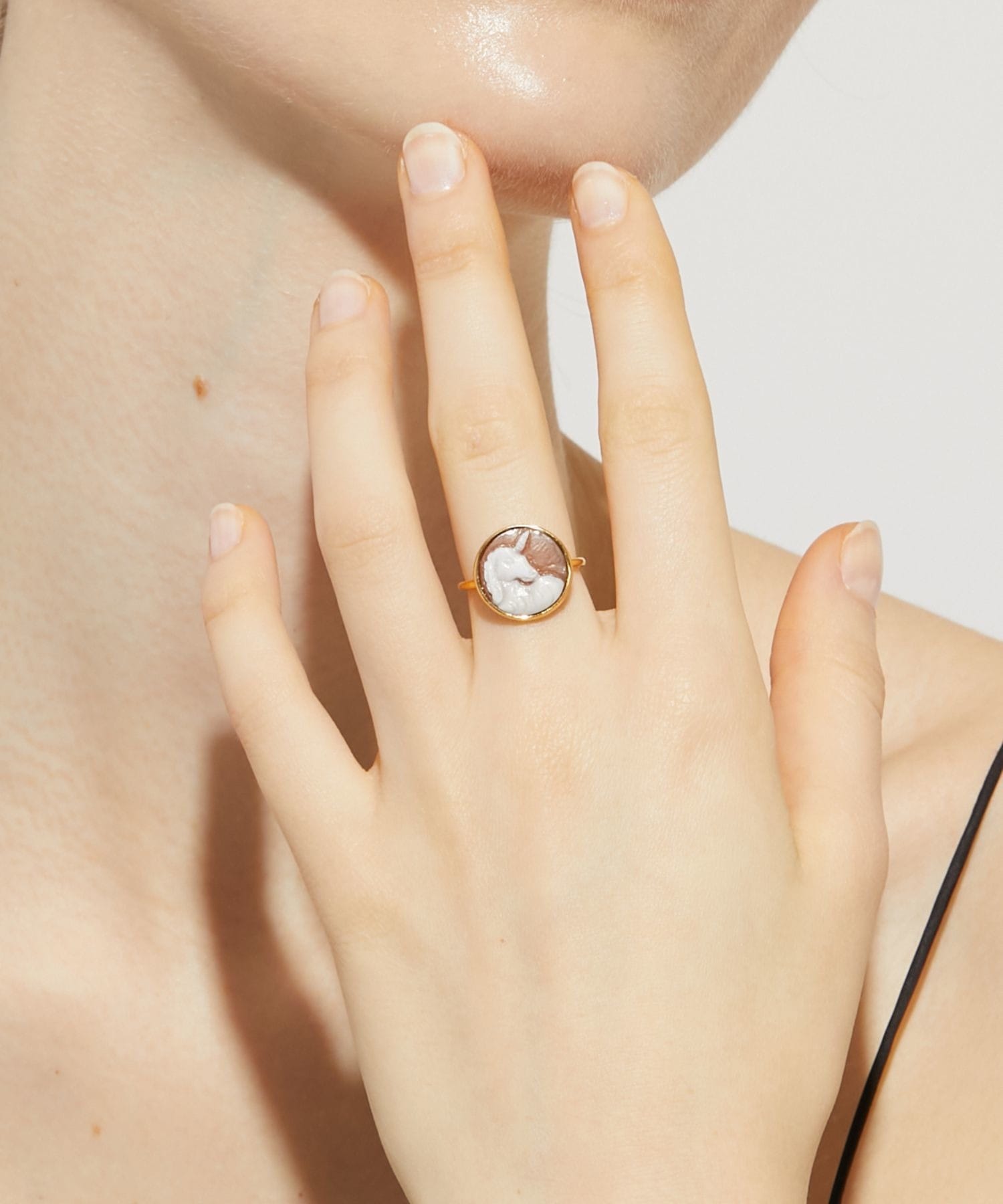 This charming, plump, and three-dimensional shell cameo evokes the warmth of handcrafted artistry. Each piece is meticulously hand-carved in Naples, Italy?a world-renowned center for shell carving. The horse motif symbolizes “success,” “advancement,” and “financial fortune,” representing an auspicious emblem believed since ancient times to “bring victory.” We've reimagined it with a unicorn design, known for “making dreams come true.” Wear it like a talisman. Its chic brown color pairs easily with any outfit, making it a ring you'll enjoy wearing every day. *Please note: As the cameo uses natural shell material, each piece varies slightly in color and shape. Additionally, since the carving is done by hand by artisans, the design may also show slight individual differences. Each piece is unique.