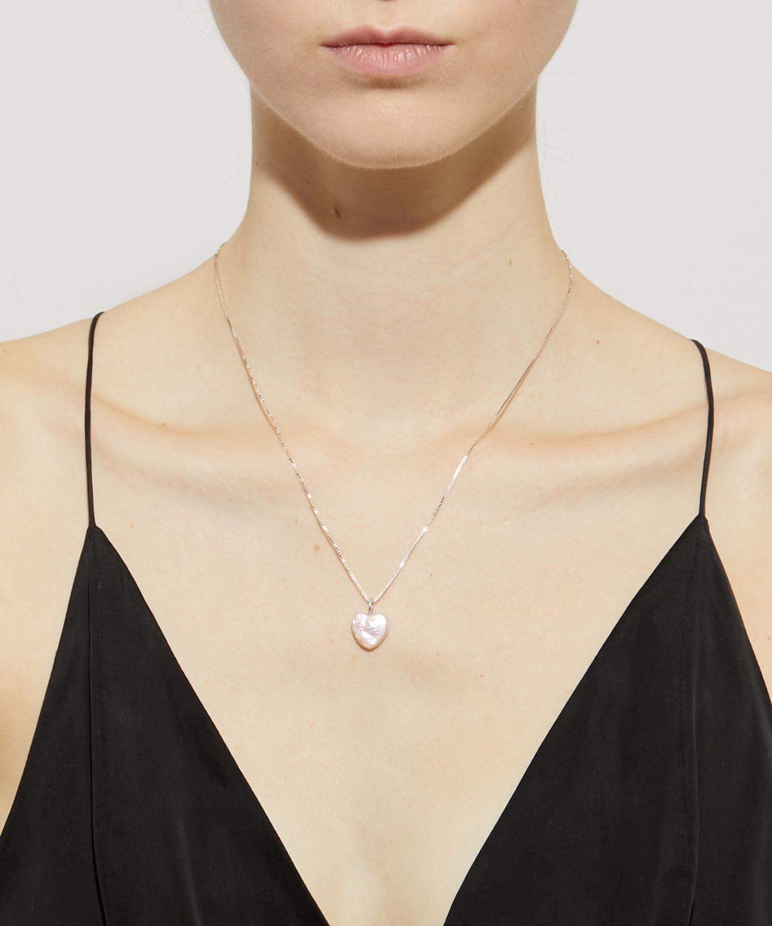 This adorable pearl necklace features a unique heart-shaped pearl. Crafted with a stylish Venetian chain, the necklace features a sliding clasp that allows you to adjust the length to your liking. Wear it as a choker or layer it over your outfit. We also recommend coordinating it with other pearl pieces.