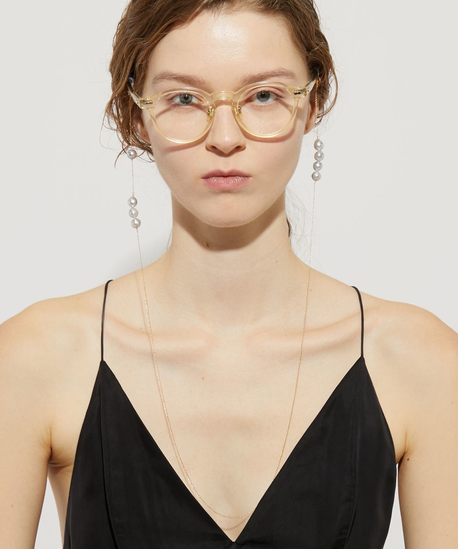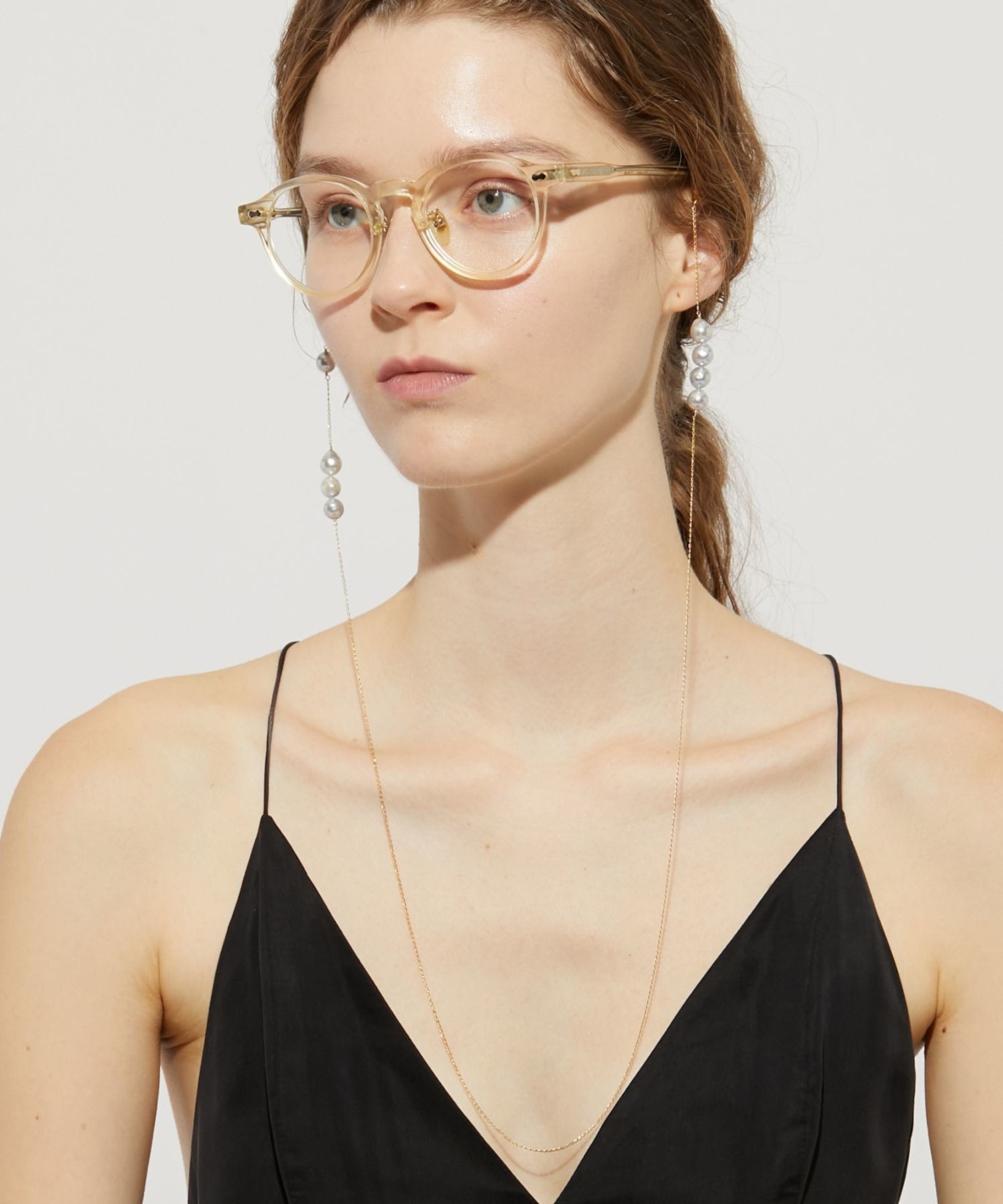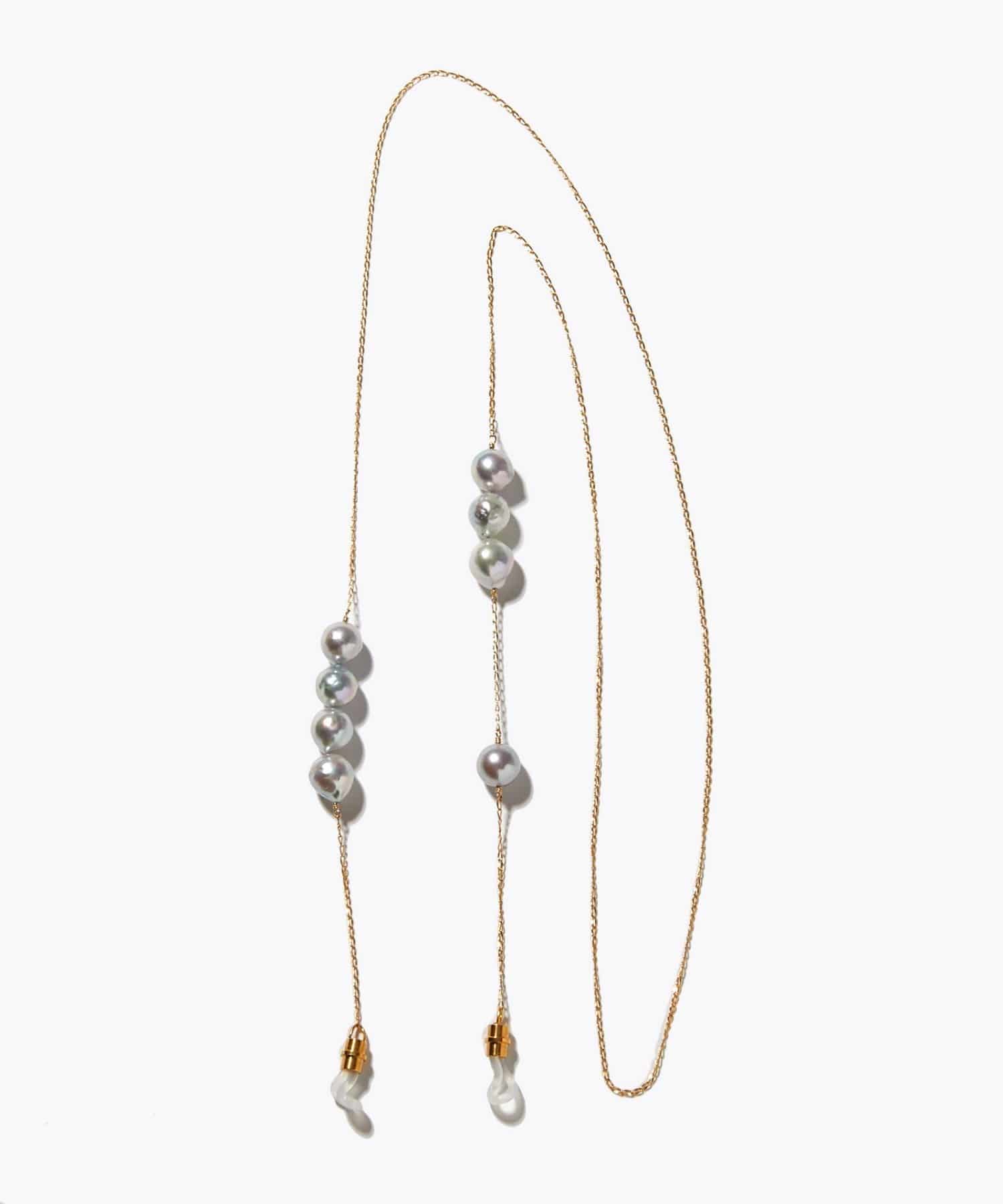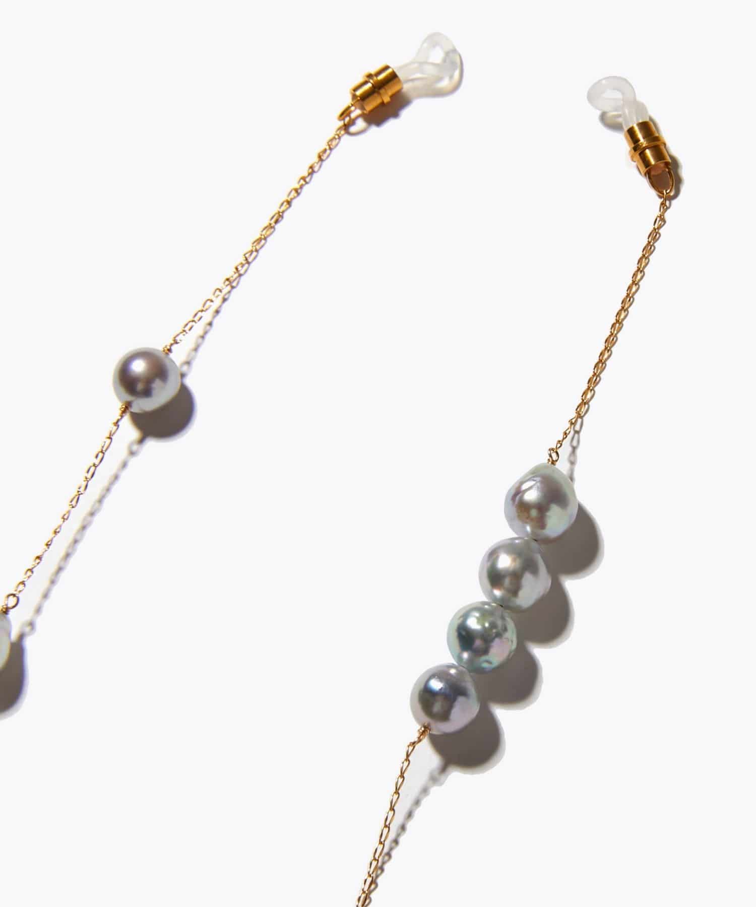 This glass strap features charming and elegant Akoya pearls that sway and sparkle. Discovered in the natural surroundings of Amakusa, Kumamoto Prefecture, these beautiful Akoya pearls, known for their exceptional luster and lustre, are arranged asymmetrically. These vibrantly grown Akoya pearls, blessed with the bounty of the ocean, evoke a sense of the mystique of nature. Not only do they brighten up your sunglasses or eyeglasses, but they can also be worn around your neck like a necklace.
