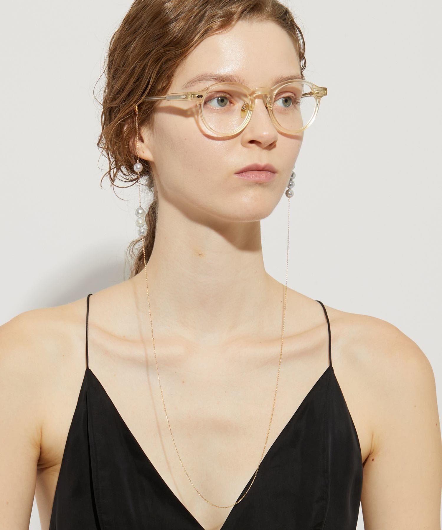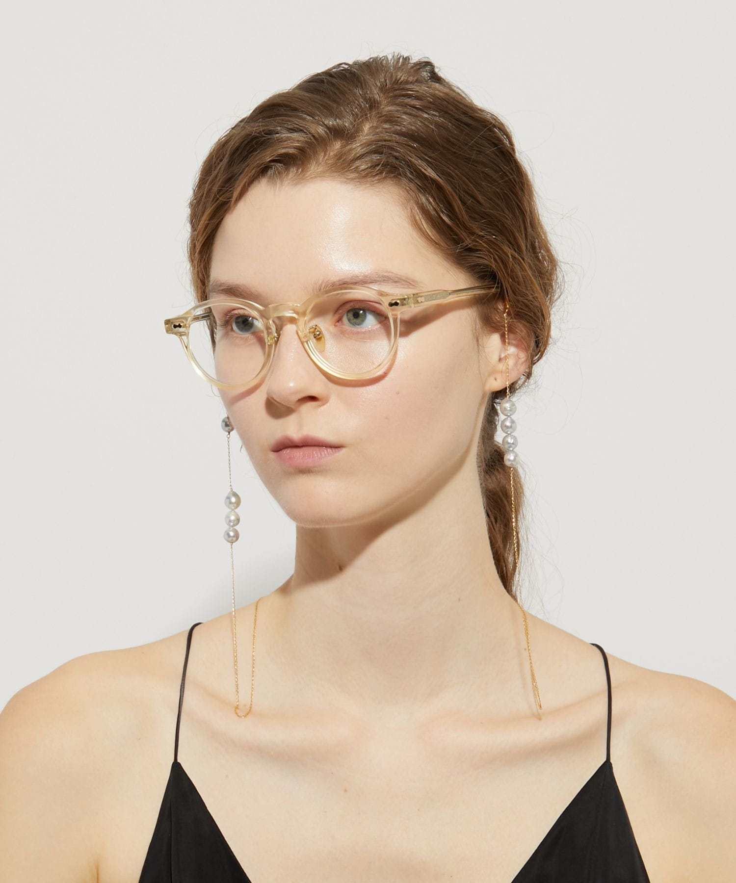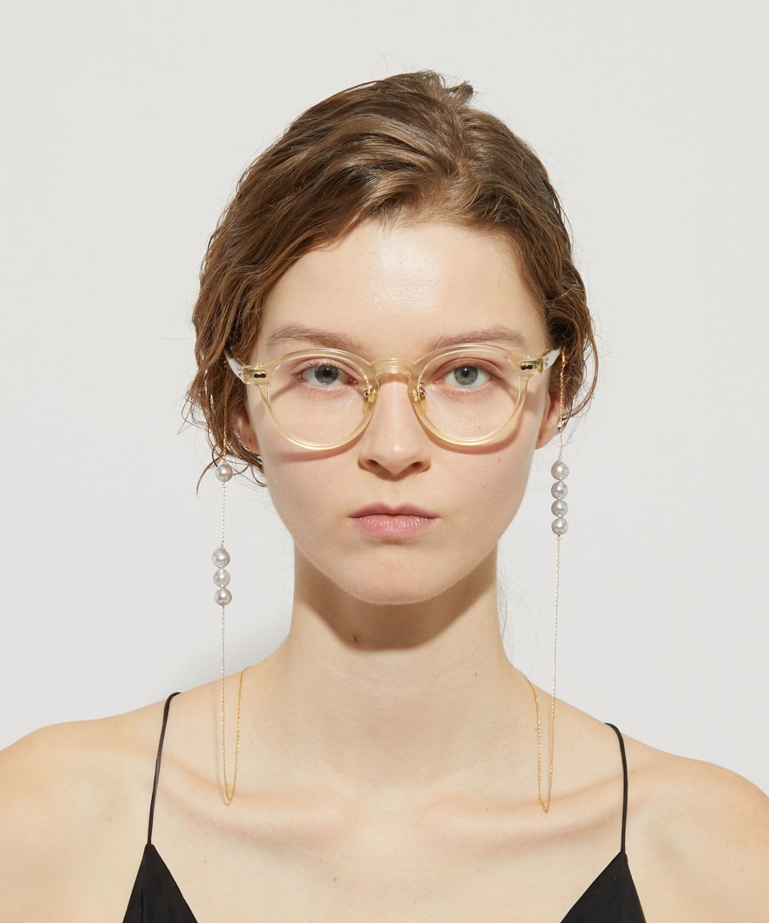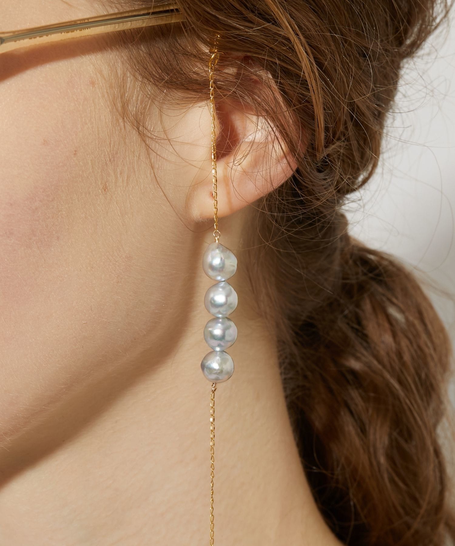 This glass strap features charming and elegant Akoya pearls that sway and sparkle. Discovered in the natural surroundings of Amakusa, Kumamoto Prefecture, these beautiful Akoya pearls, known for their exceptional luster and lustre, are arranged asymmetrically. These vibrantly grown Akoya pearls, blessed with the bounty of the ocean, evoke a sense of the mystique of nature. Not only do they brighten up your sunglasses or eyeglasses, but they can also be worn around your neck like a necklace.