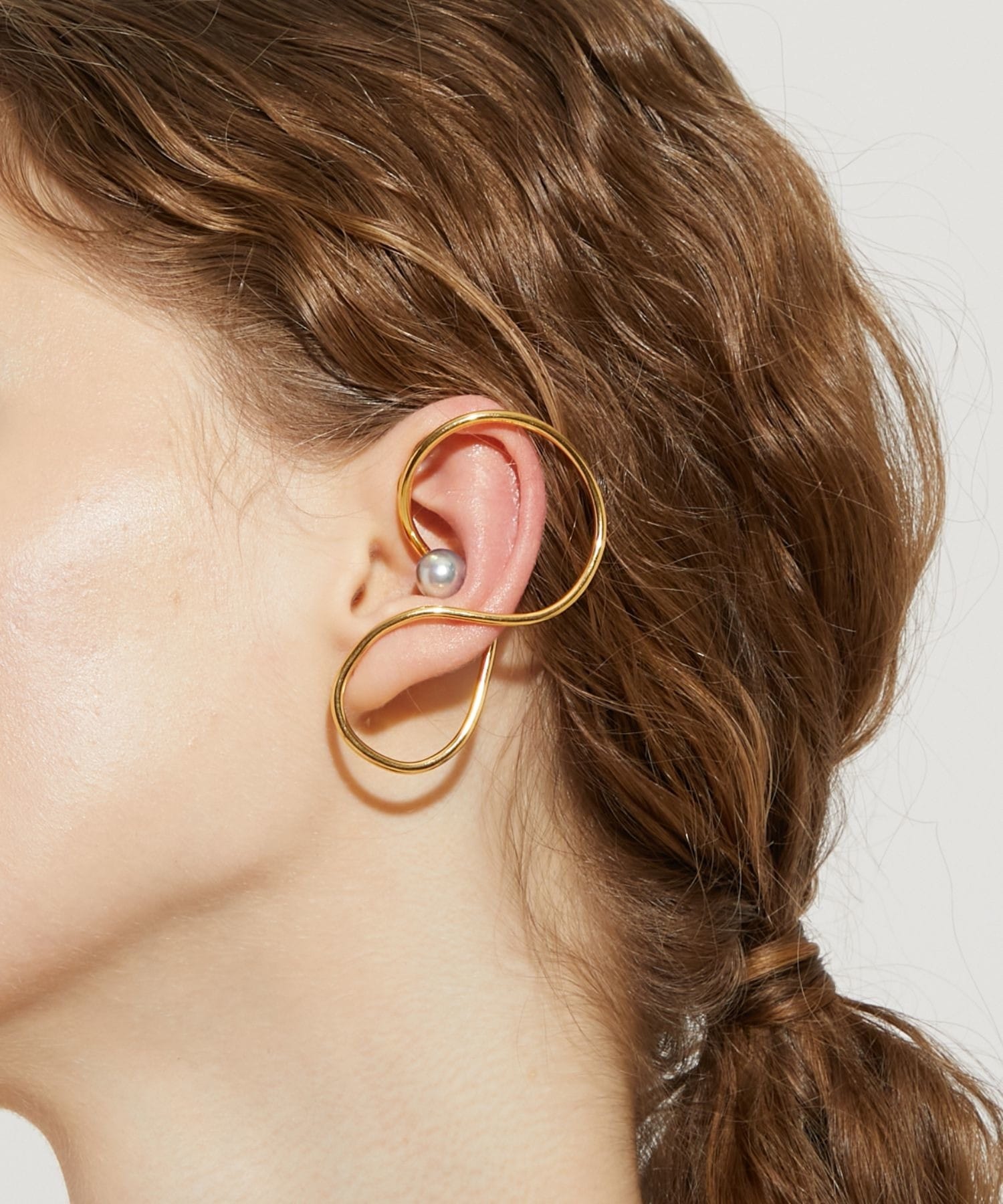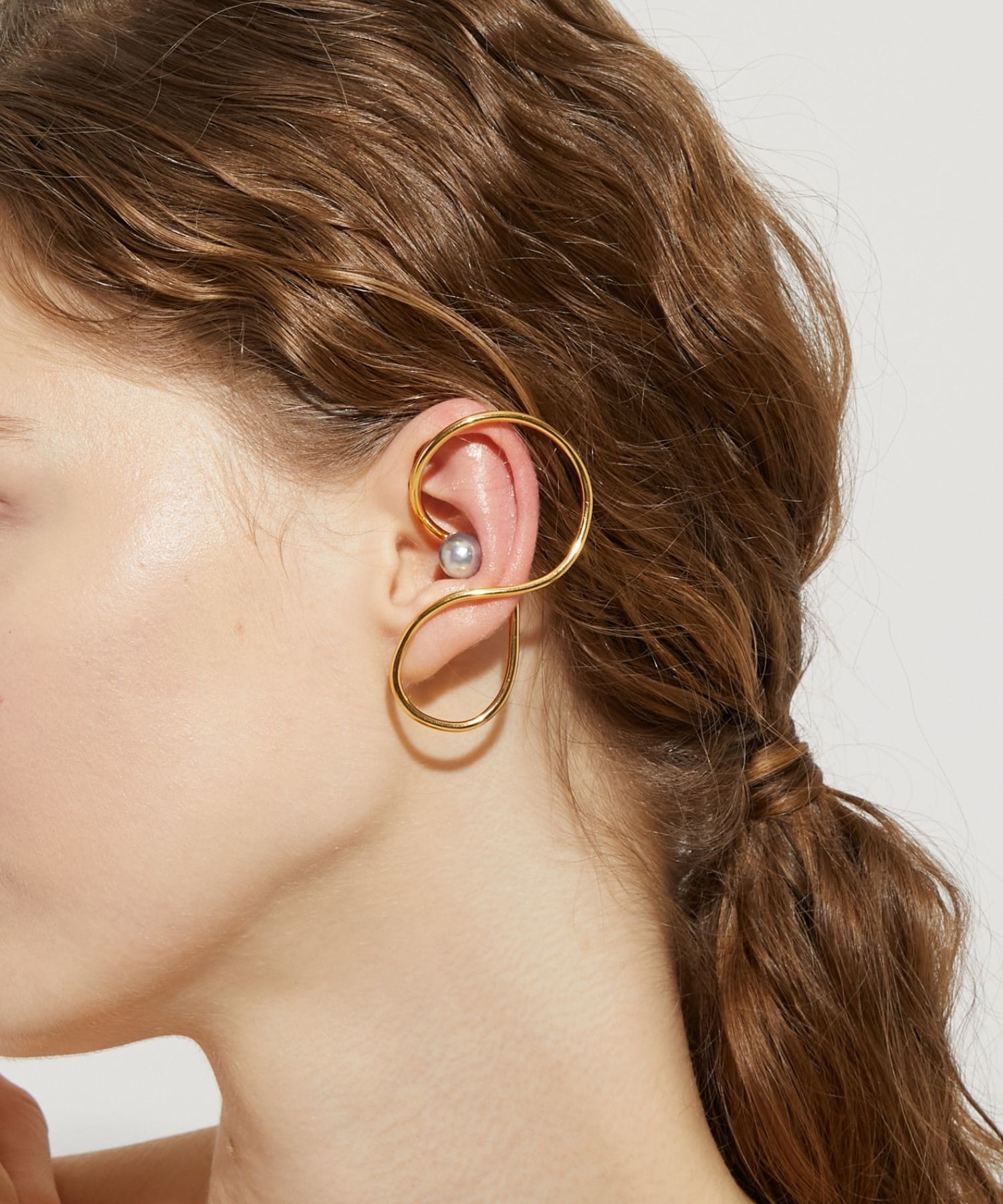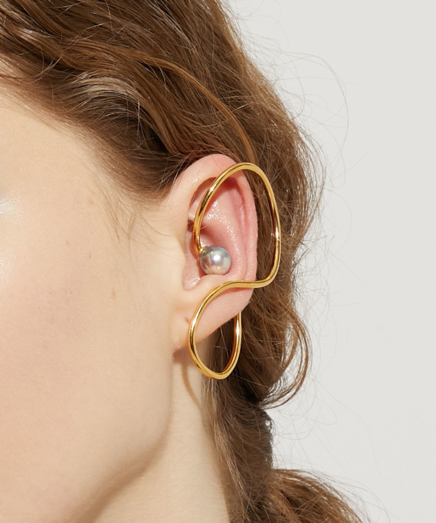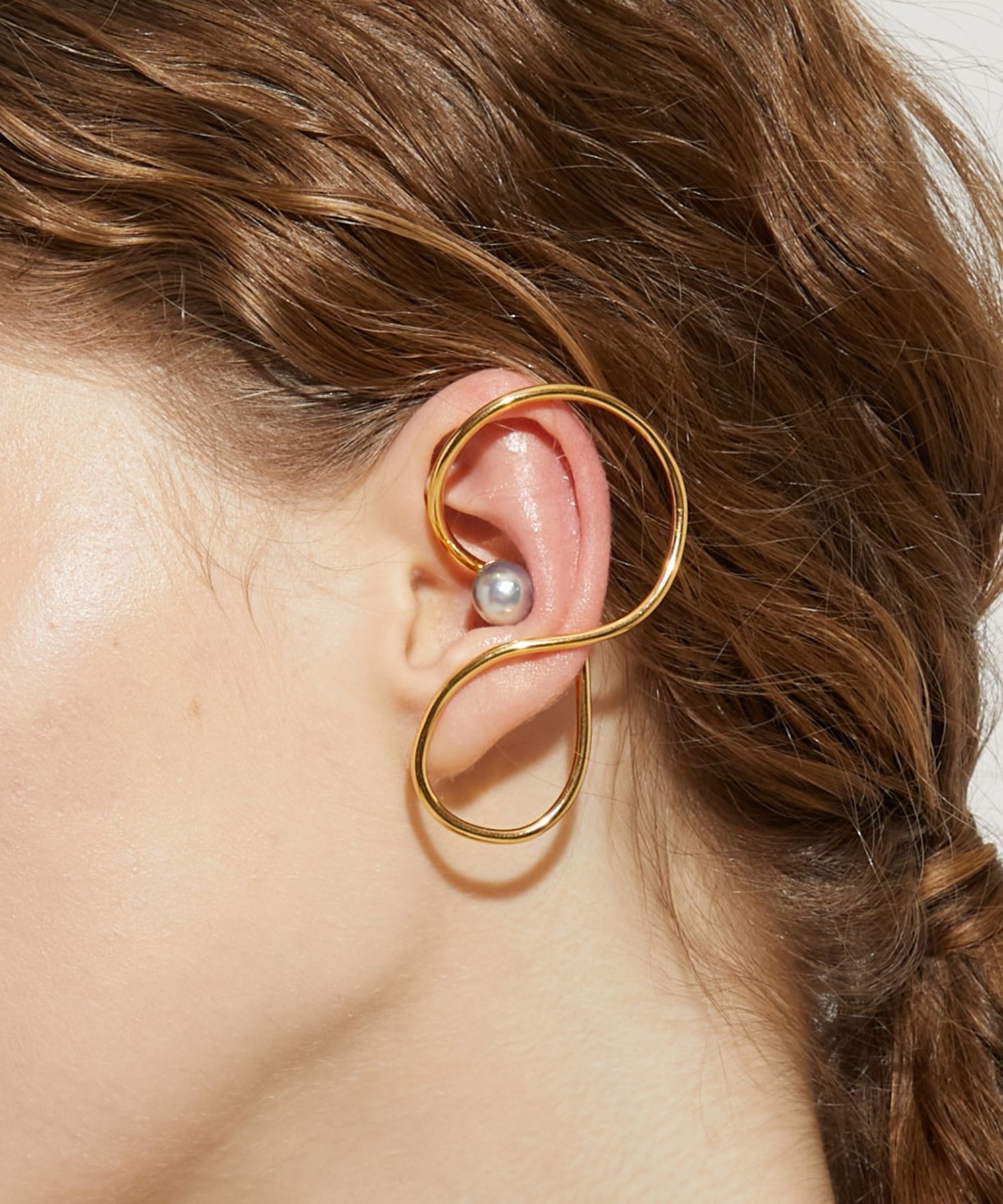 We discovered these beautiful Akoya pearls, with their exceptional luster and shine, in the natural surroundings of Amakusa, Kumamoto Prefecture. Brought to life amid the bounty of the ocean, these vibrant Akoya pearls evoke a sense of the mysteries of nature. This ear cuff features a large Akoya pearl. The modern, futuristic design that covers the entire ear adds a bold presence to your hands and ears. A single piece can accentuate your ear and add a subtle touch of elegance. *Please note that due to the design of this ear cuff, it may not fit everyone's ears.